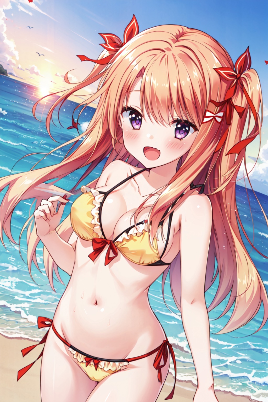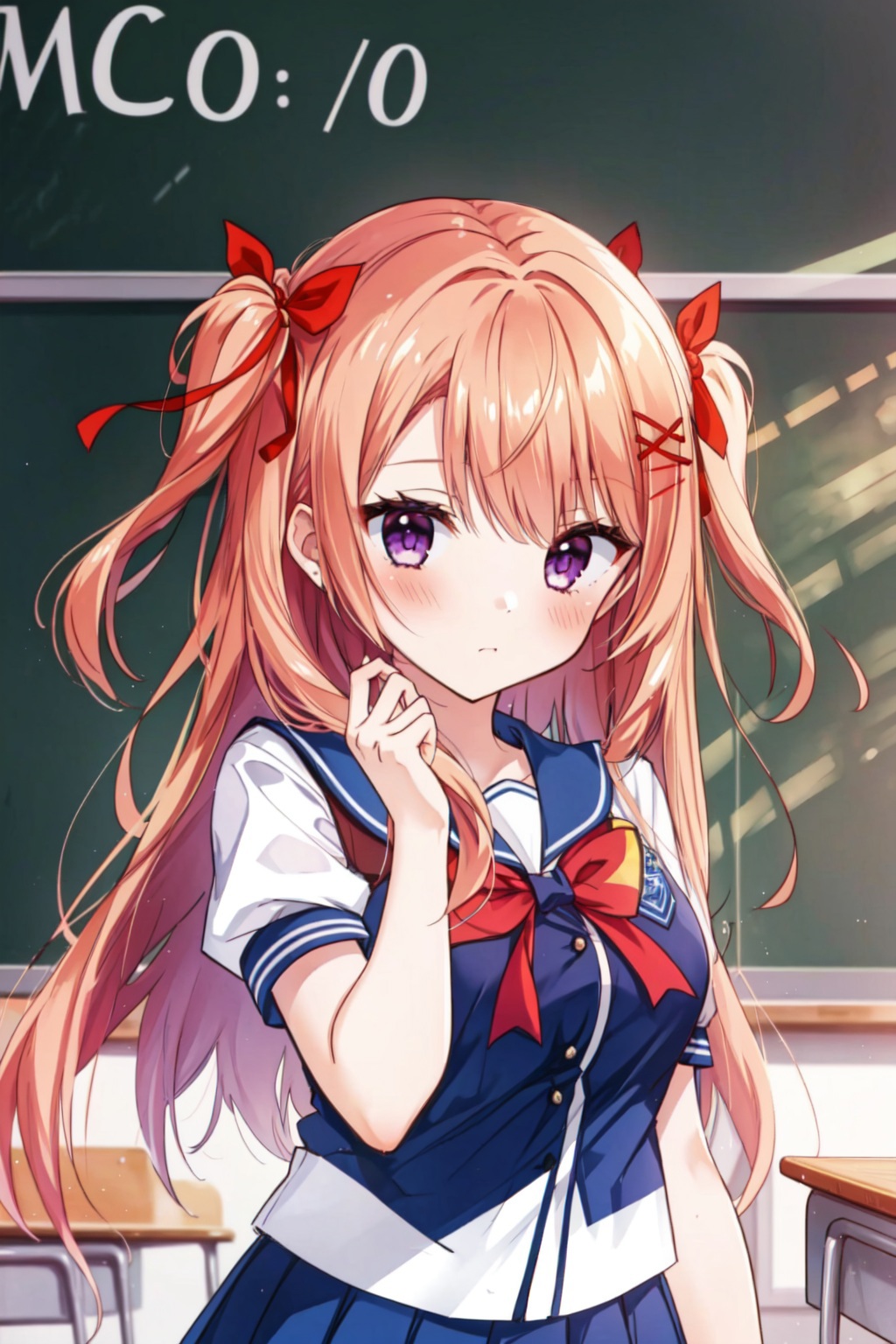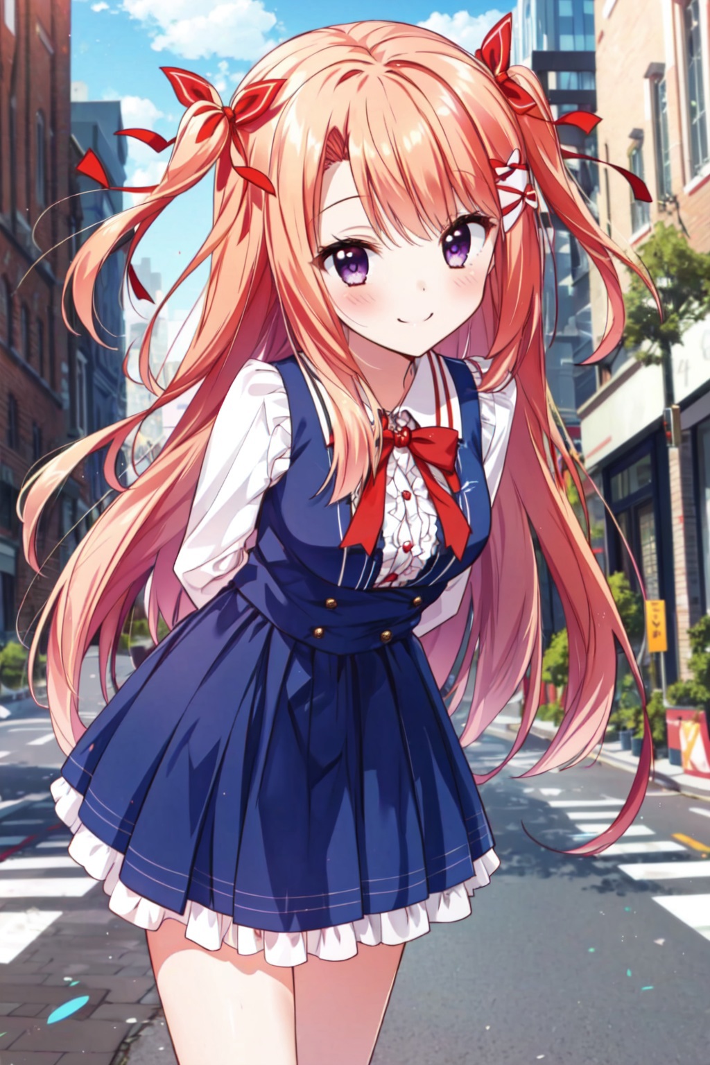 mihato_kano, red bow, red ribbon, two side up, long hair