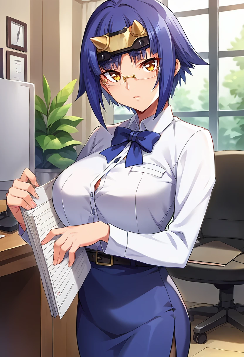 Trigger words: ct_k4guya, blue hair, short hair, large breasts, forehead protector,