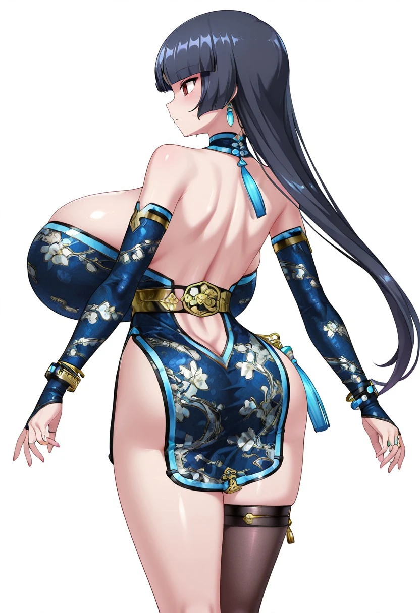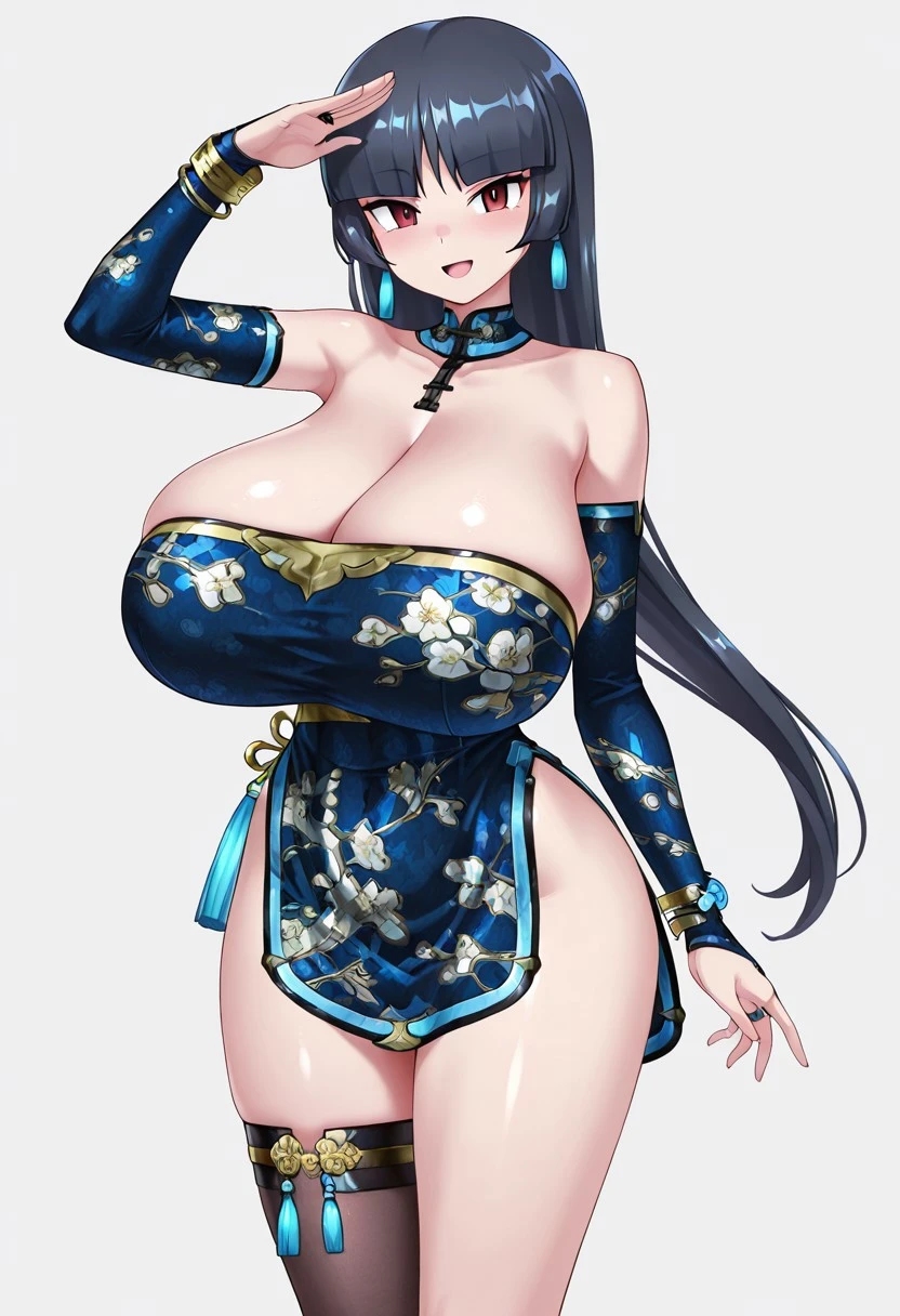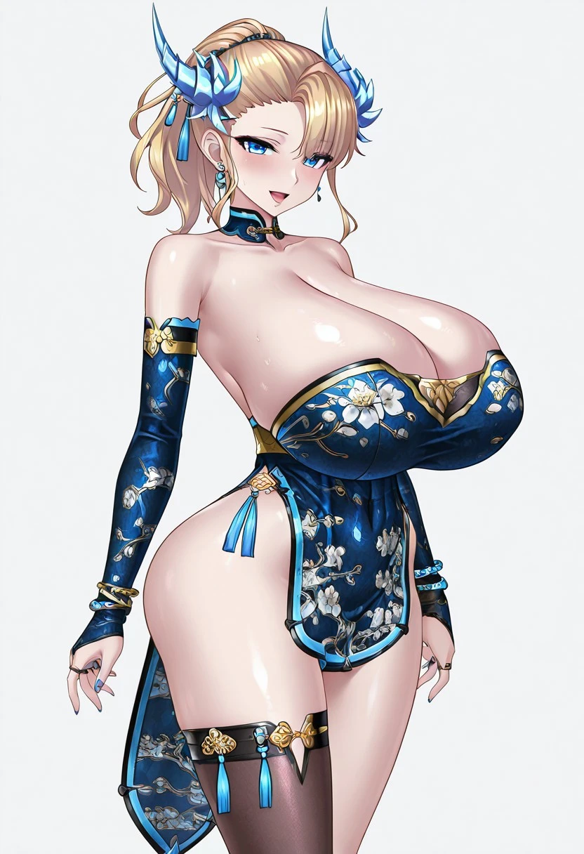 TAGS : PBR,blue china dress,chinese clothes,blue bridal gauntlets,tassel,detached collar,bracelet,strapless,short dress,single thighhigh,side slit,strapless dress,floral print,
