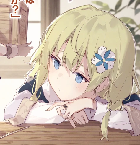 1girl, daisy_von_preslaria, loli, green hair, blue eyes, hair ornament,