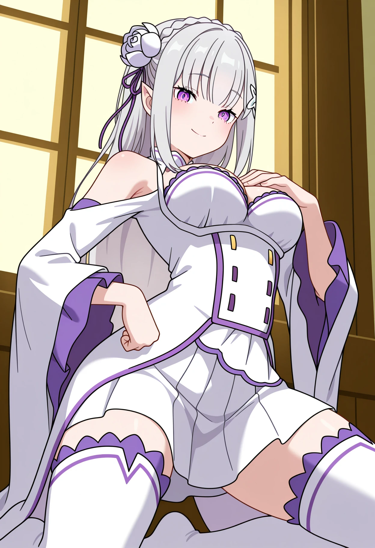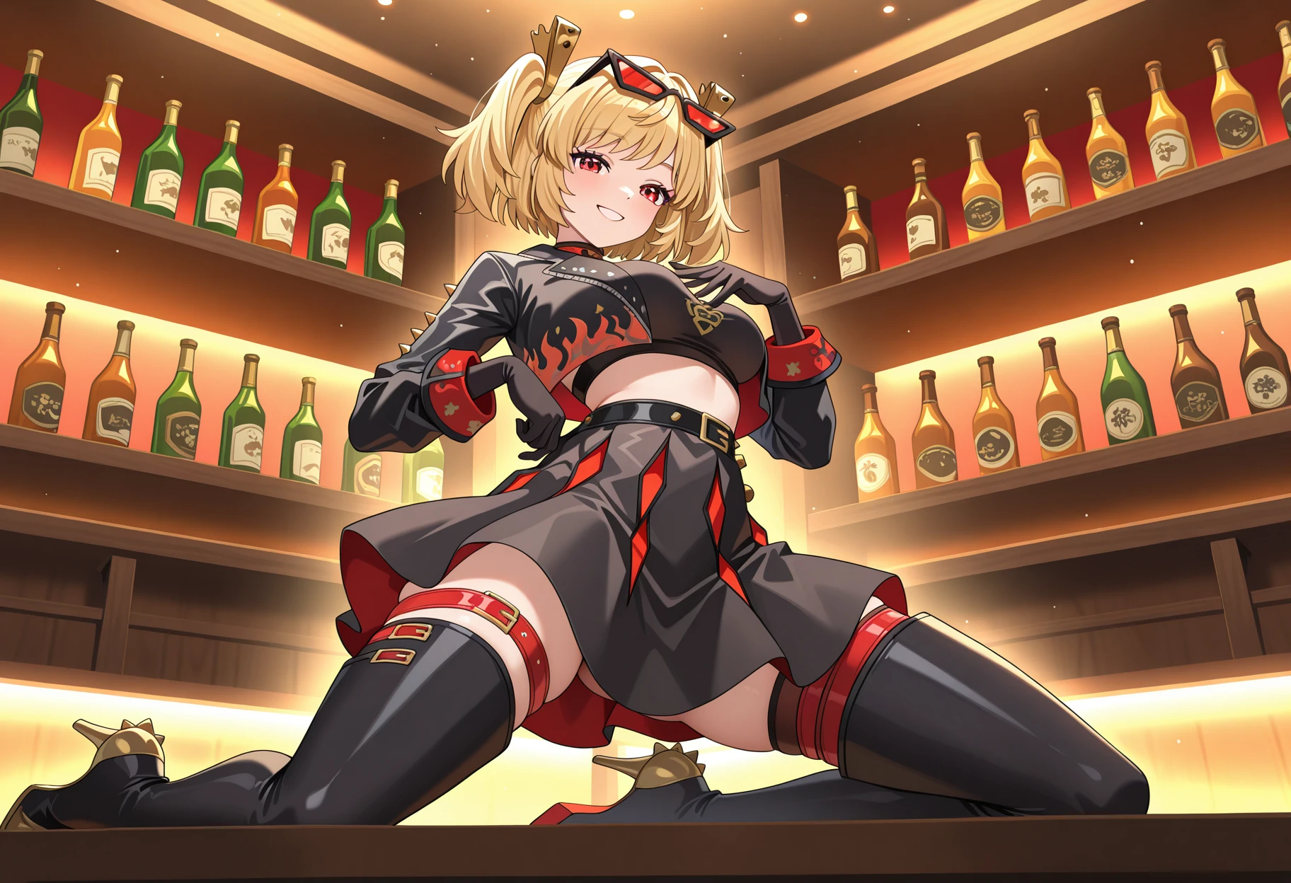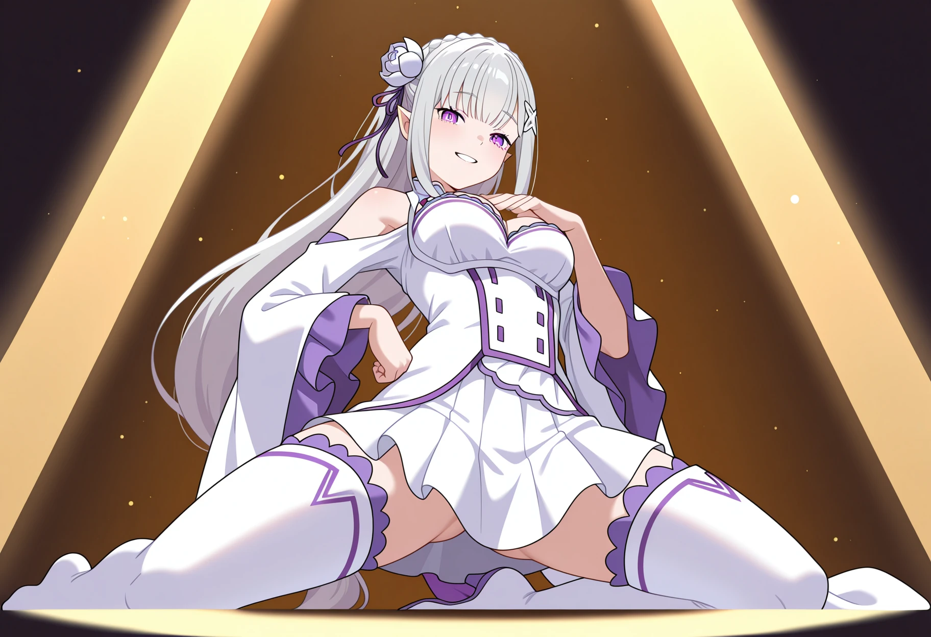 shiburnicepose, kneeling, hand on own hip, hand on own chest,