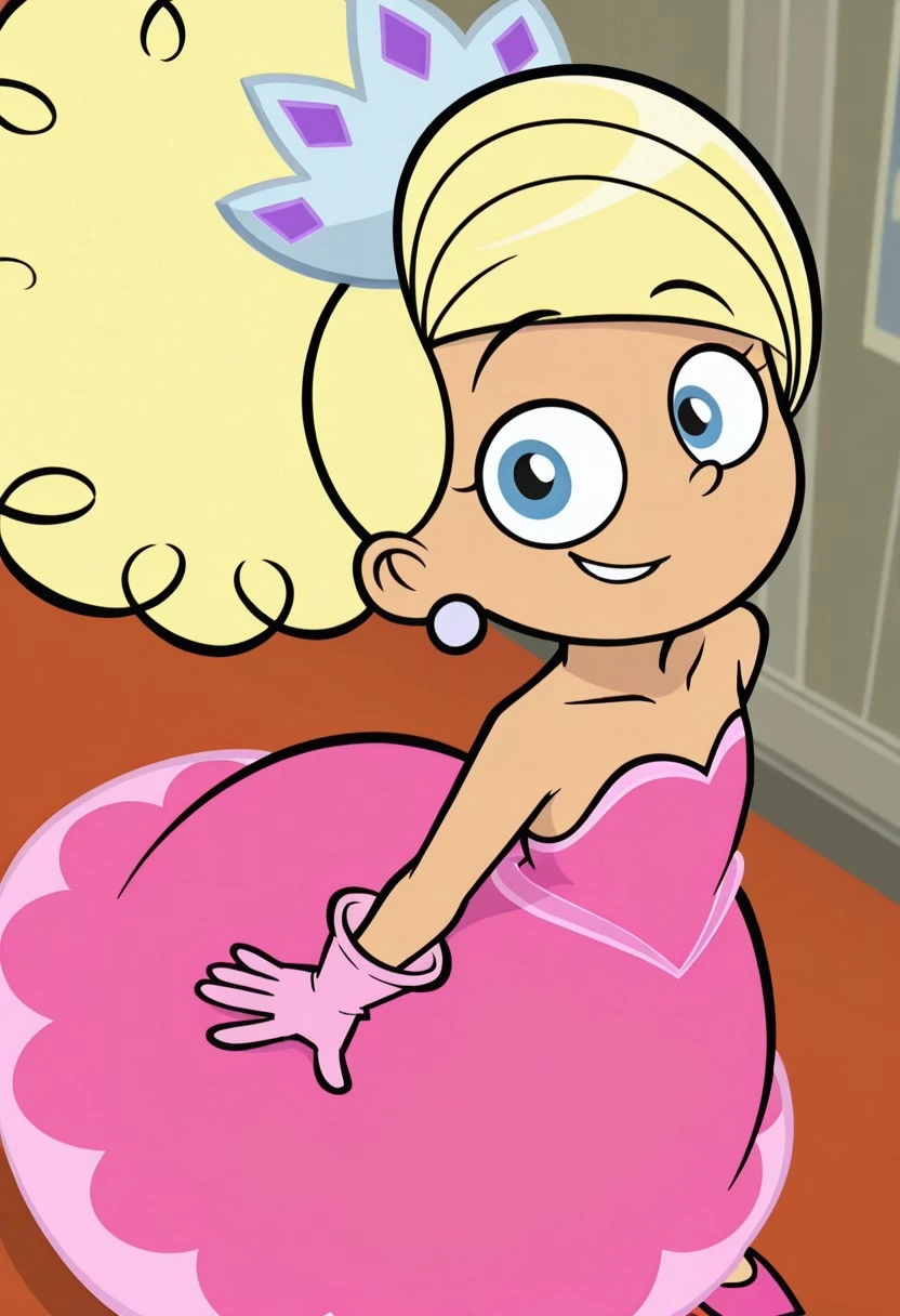 pink princess dress, long pink gloves, hot pink pumps