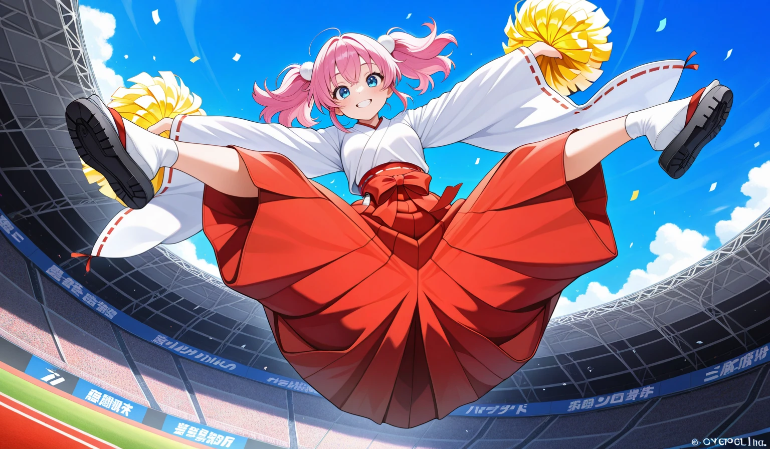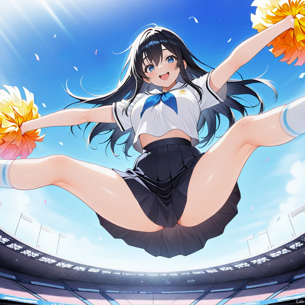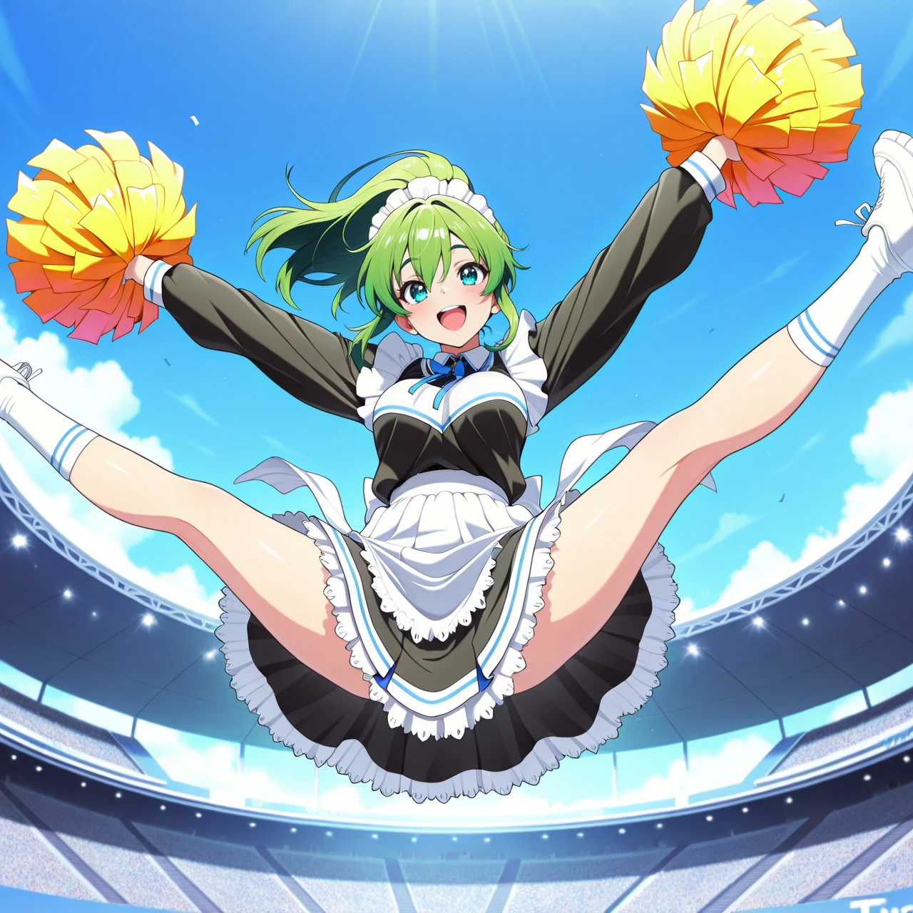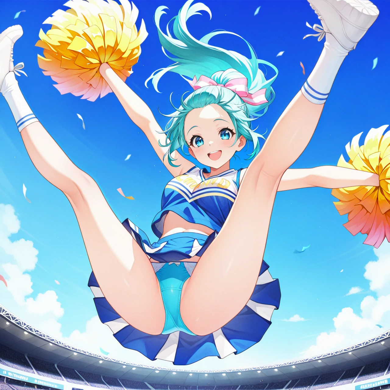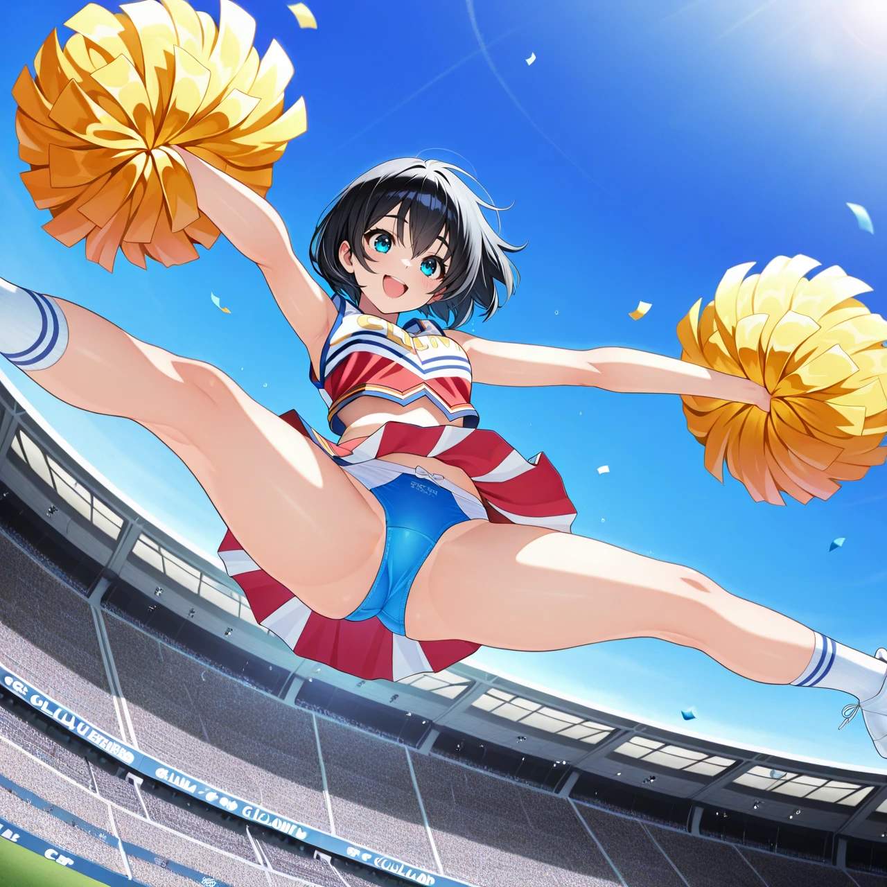 pom_pom_\(cheerleading\), (:1.2), (straight legs:1.3), outstretched_arms,