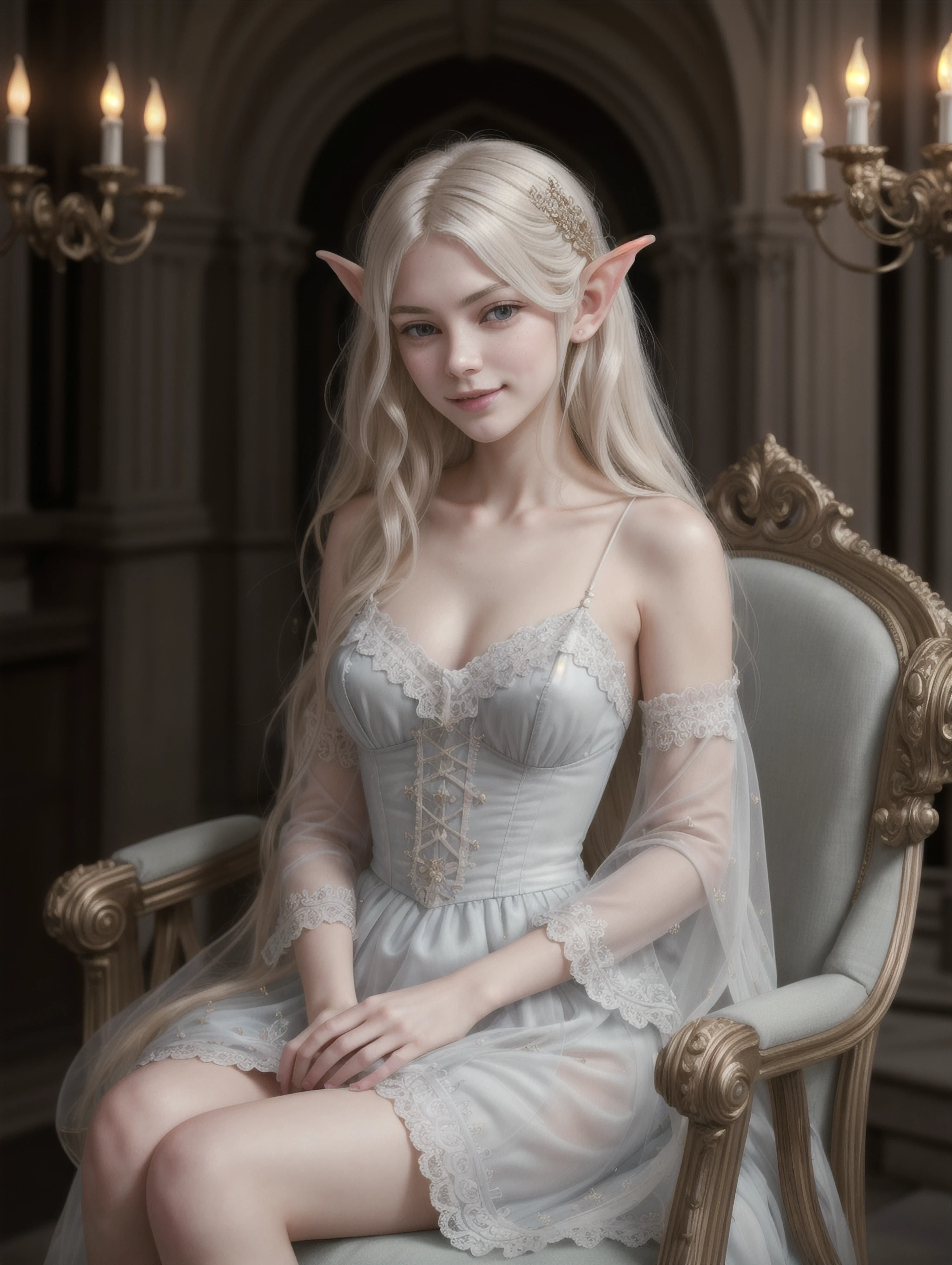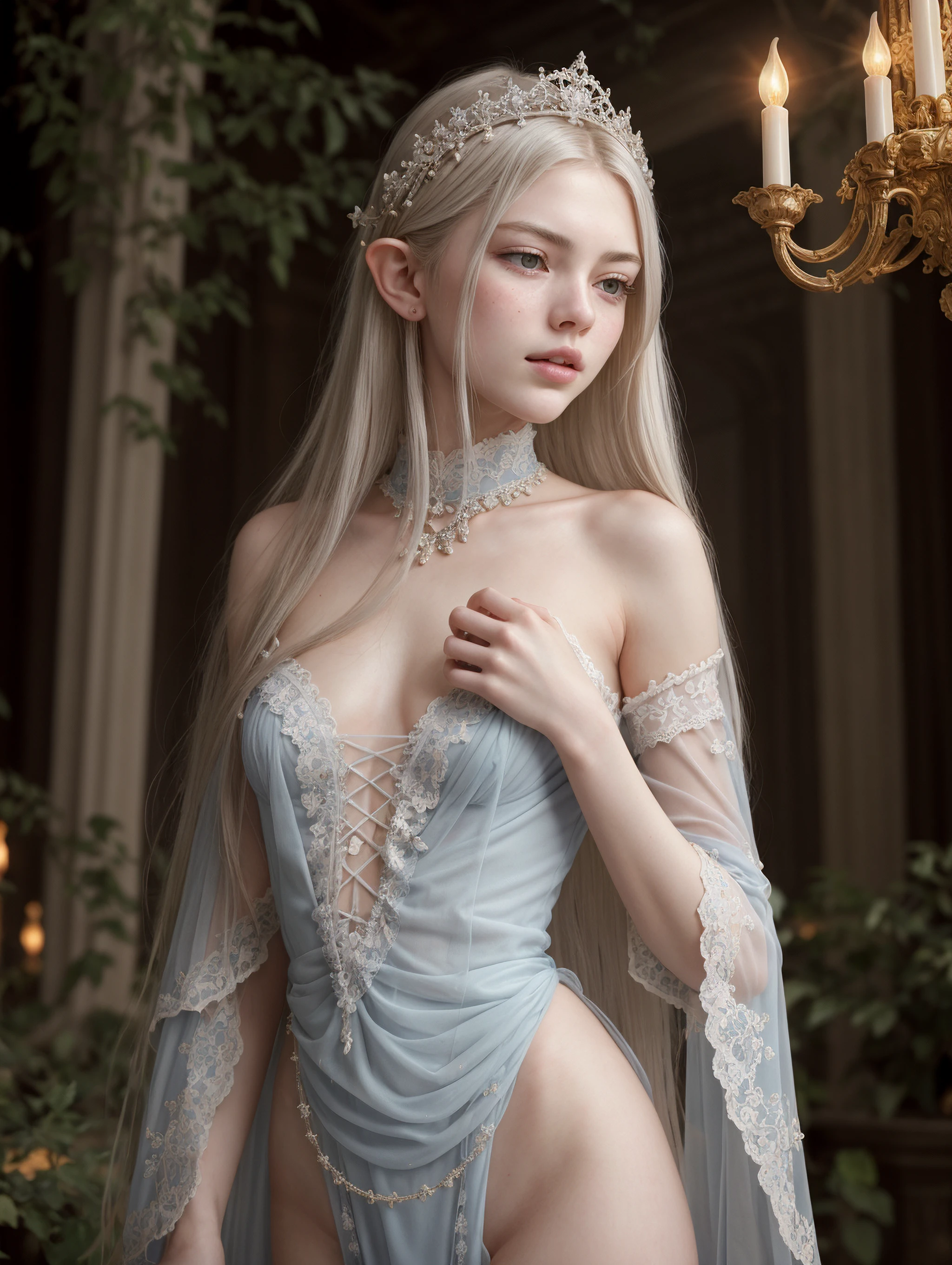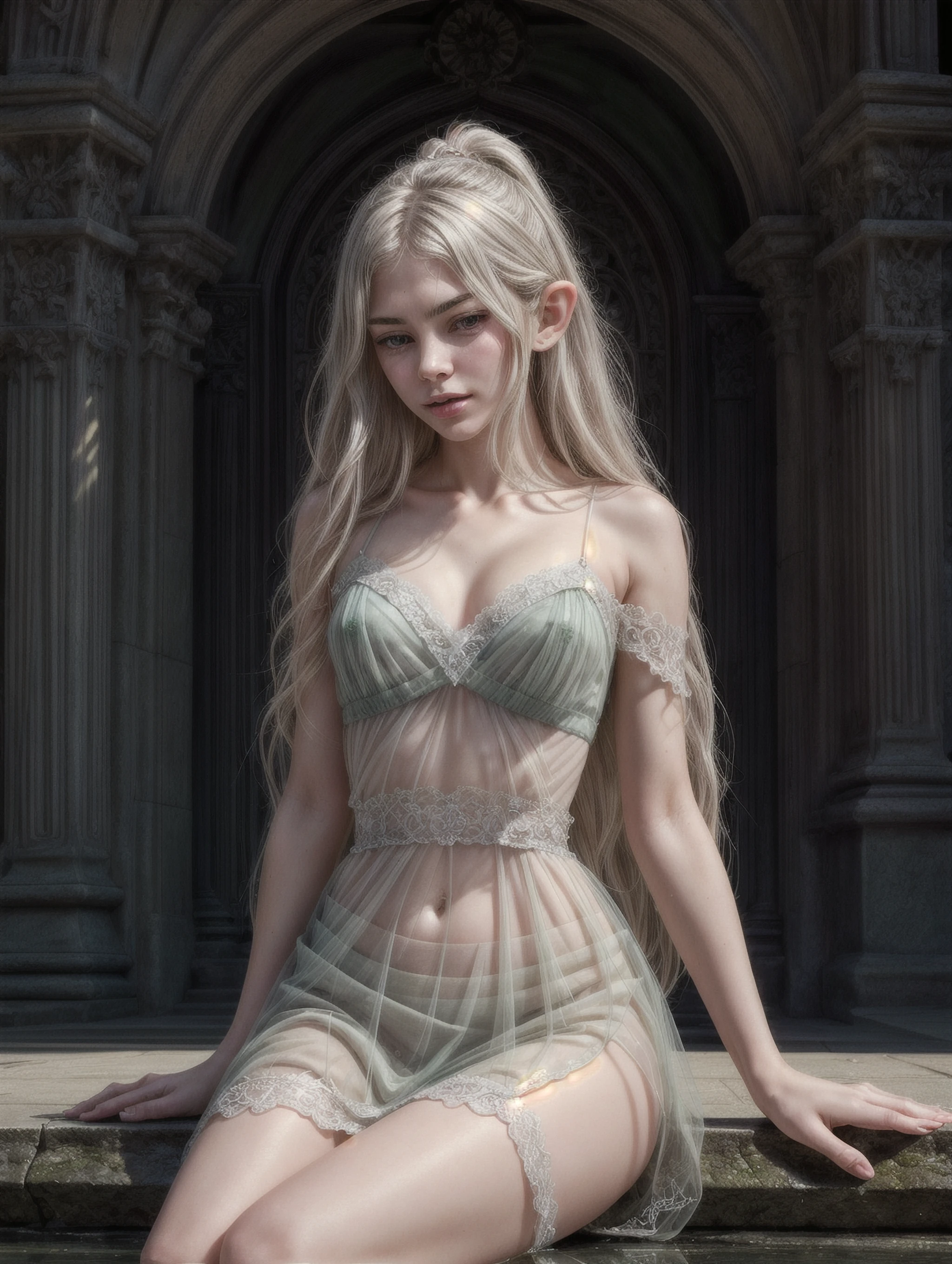 She is pale, slender and still young for an elf. A dreamy young mind makes her oblivious to her impact on others with her beauty and attractiveness.
