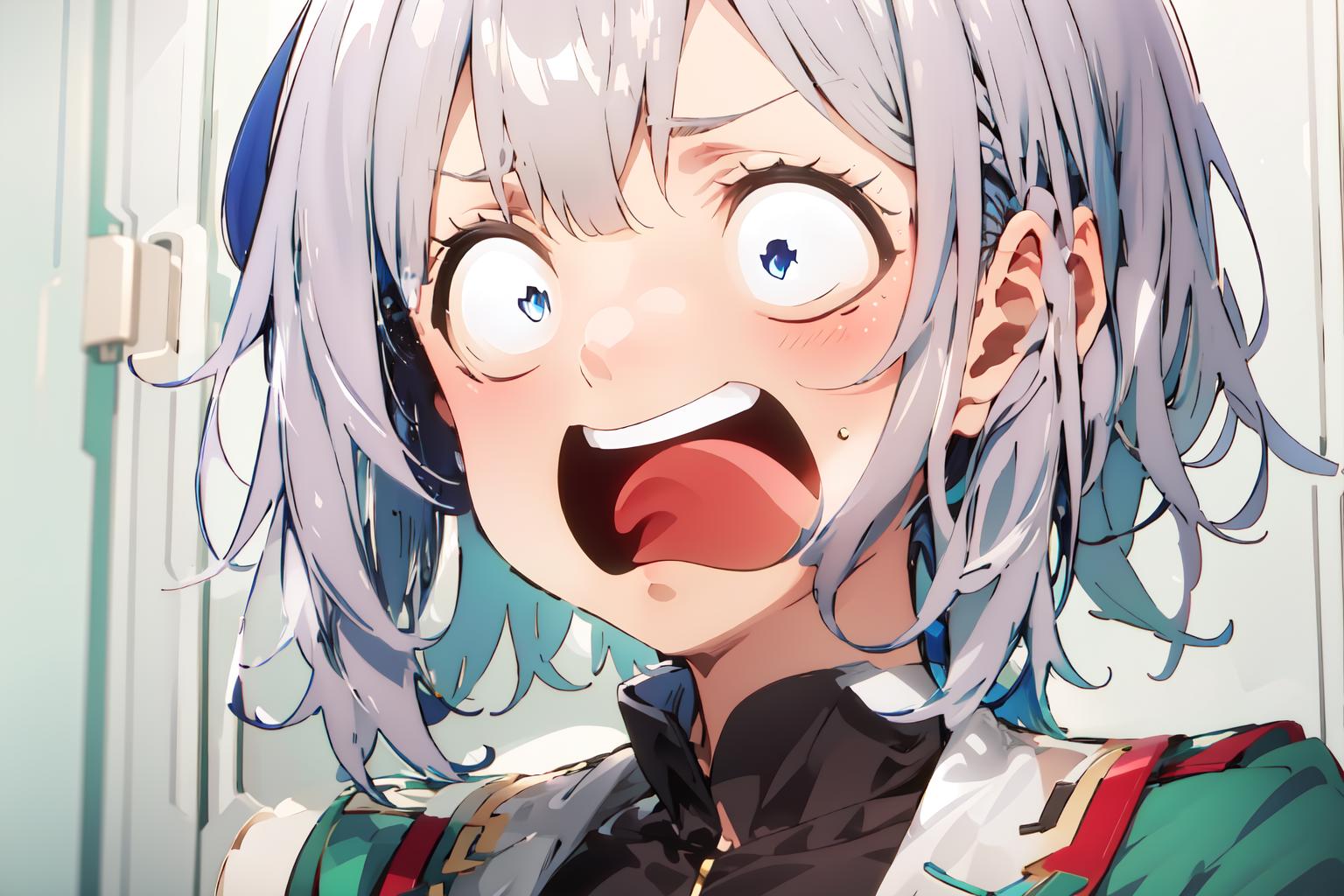 open mouth,tongue out,surprised,constricted pupils,wide-eyed