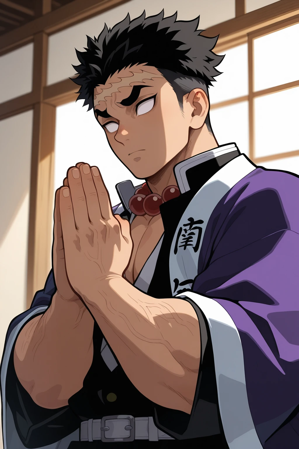 Gyomei Himejima, blank eyes, black hair, forehead scar