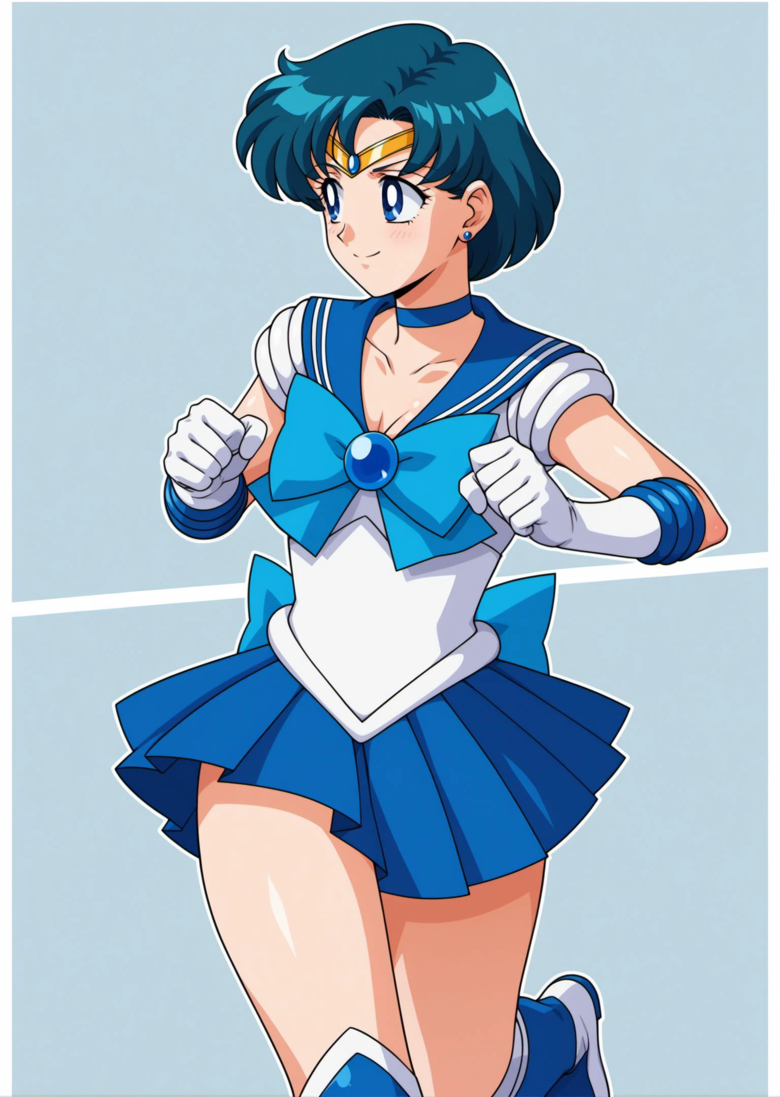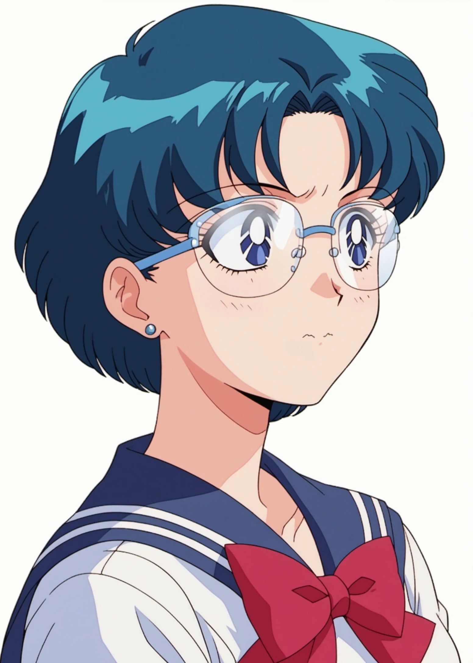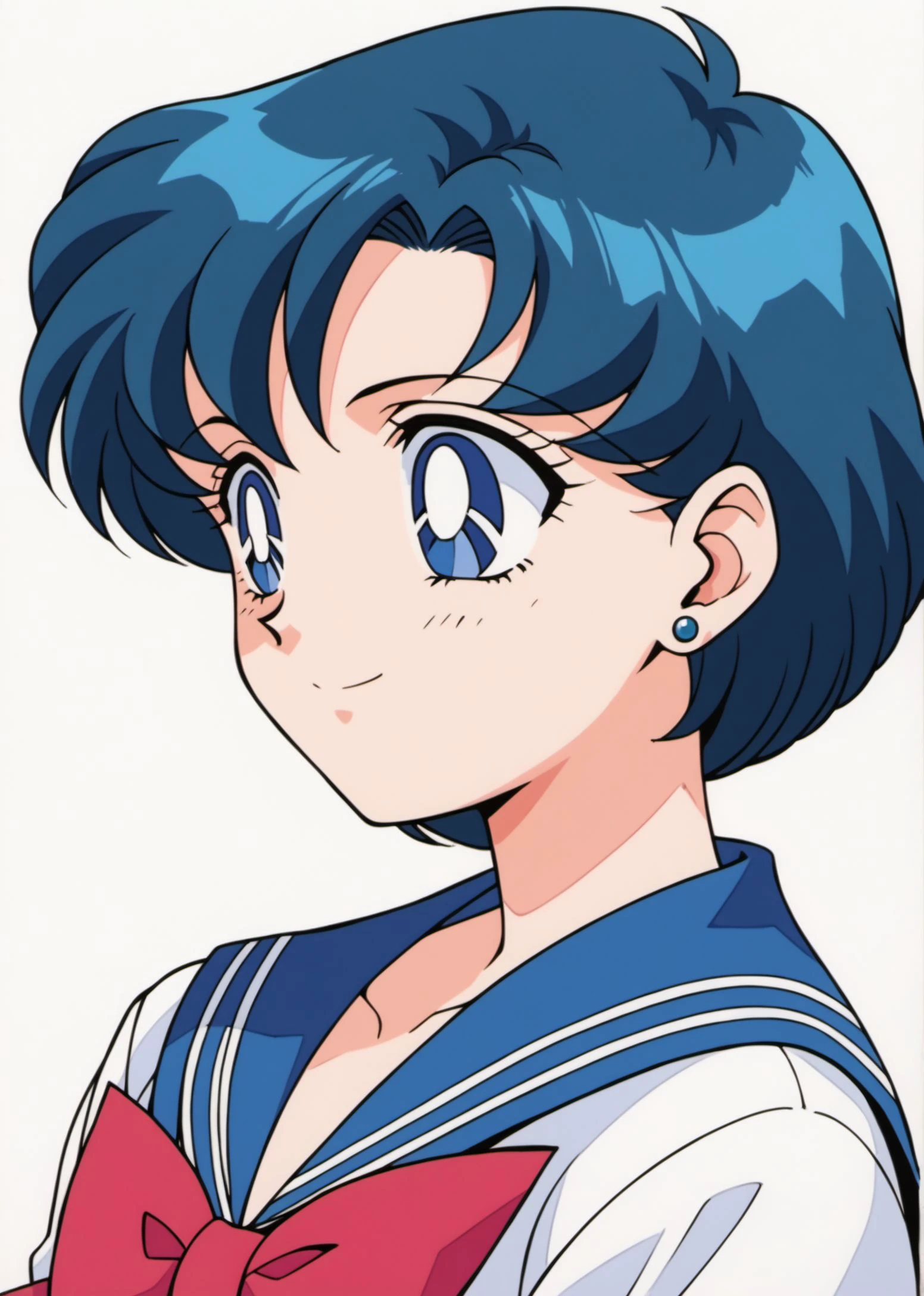 sailor mercury, mizuno ami, short hair, bangs, blue eyes, blue hair, parted bangs, stud earrings, tareme,