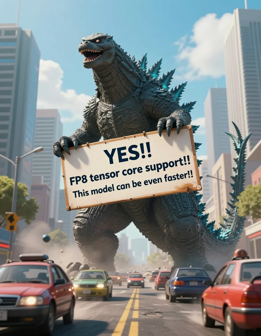 Hardware fp8 support: Much faster than bf16 and classic fp8 models on supported GPU.