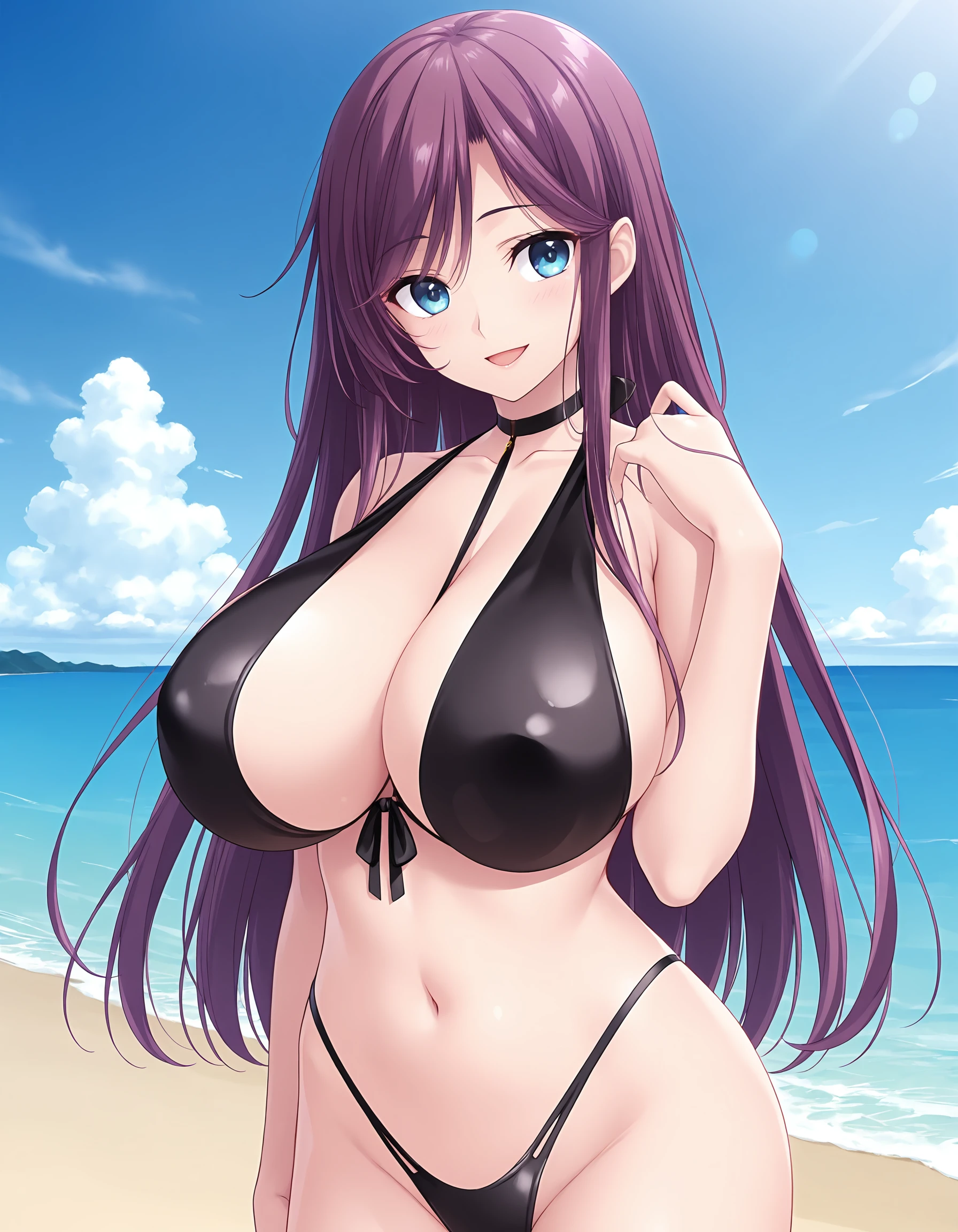 outfit04, bikini, black bikini, strings bikini, multi-strapped bikini, chocker, black chocker, front tie bikini top, highleg, highleg bikini bottom, groin,