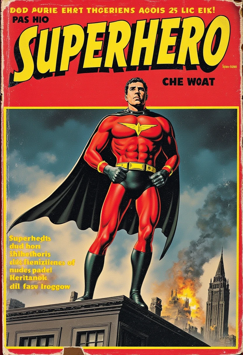 "Pulp Flux Creator" excels at generating covers with a strong, classic pulp art vibe. It effectively replicates vintage illustration styles and aged textures. By using the trigger word 'pulpfluxcr3470r' and flavor text like "vintage pulp magazine cover, faded colors, creased and worn edges, torn and frayed corners, cracked and peeling surface," the model enhances the overall appearance, delivering a worn, nostalgic look.