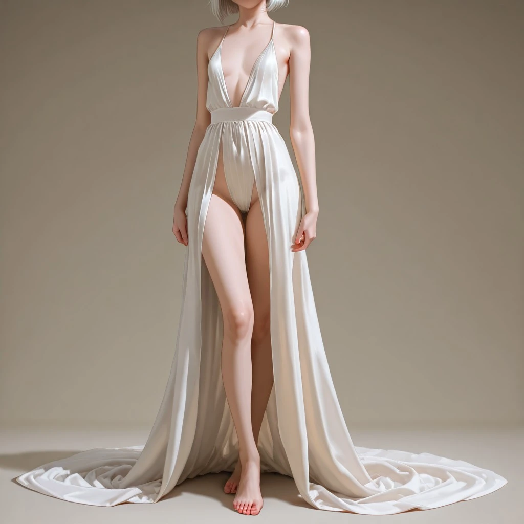 skinny, slender, prominent bones, prominent collarbone, visible ribs, thin legs, thin arms