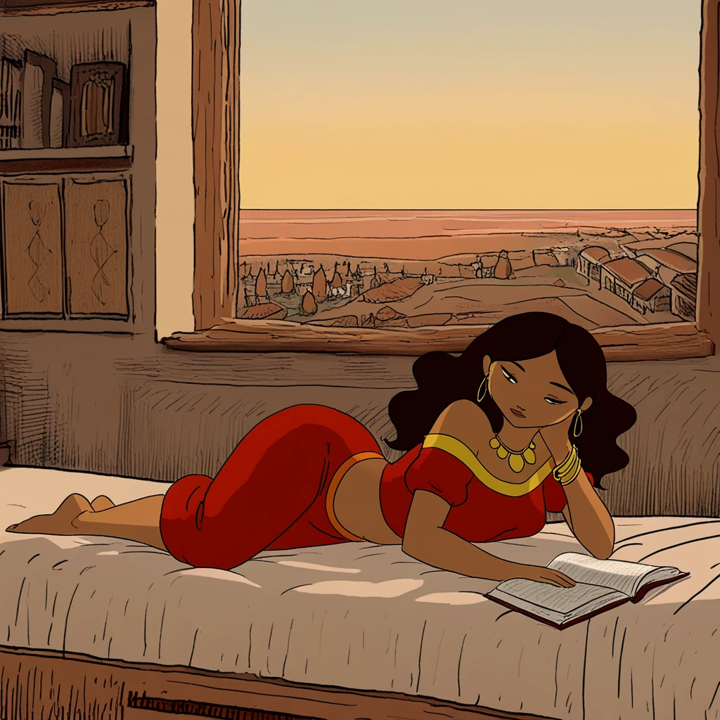 Zlabya is the rabbi's daughter from the Eisner award winning comic Rabbi's Cat. She's a feisty, educated lady exploring her place in the Algerian society and sports an absolutely iconic mix of tan, red and gold. I created the LoRA based on the somewhat more consistently drawn 2011 animated film version.