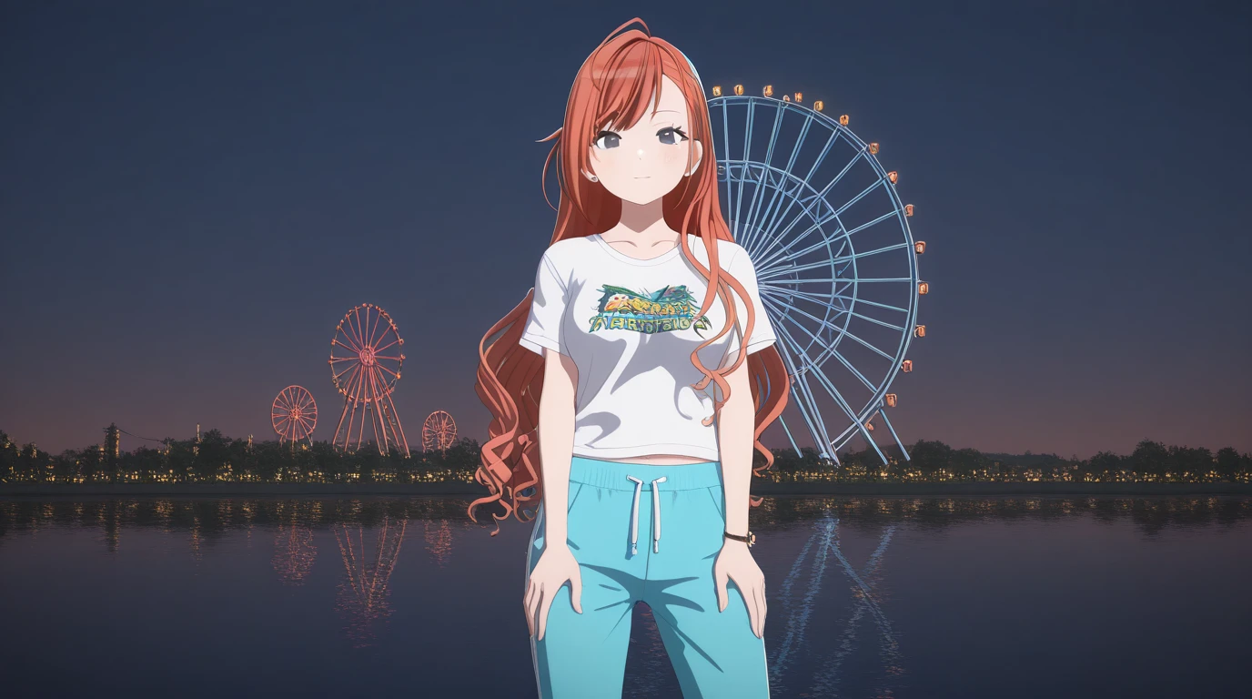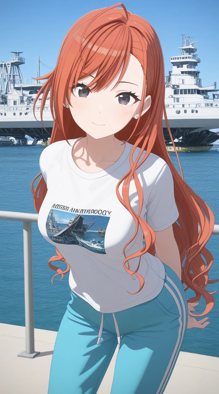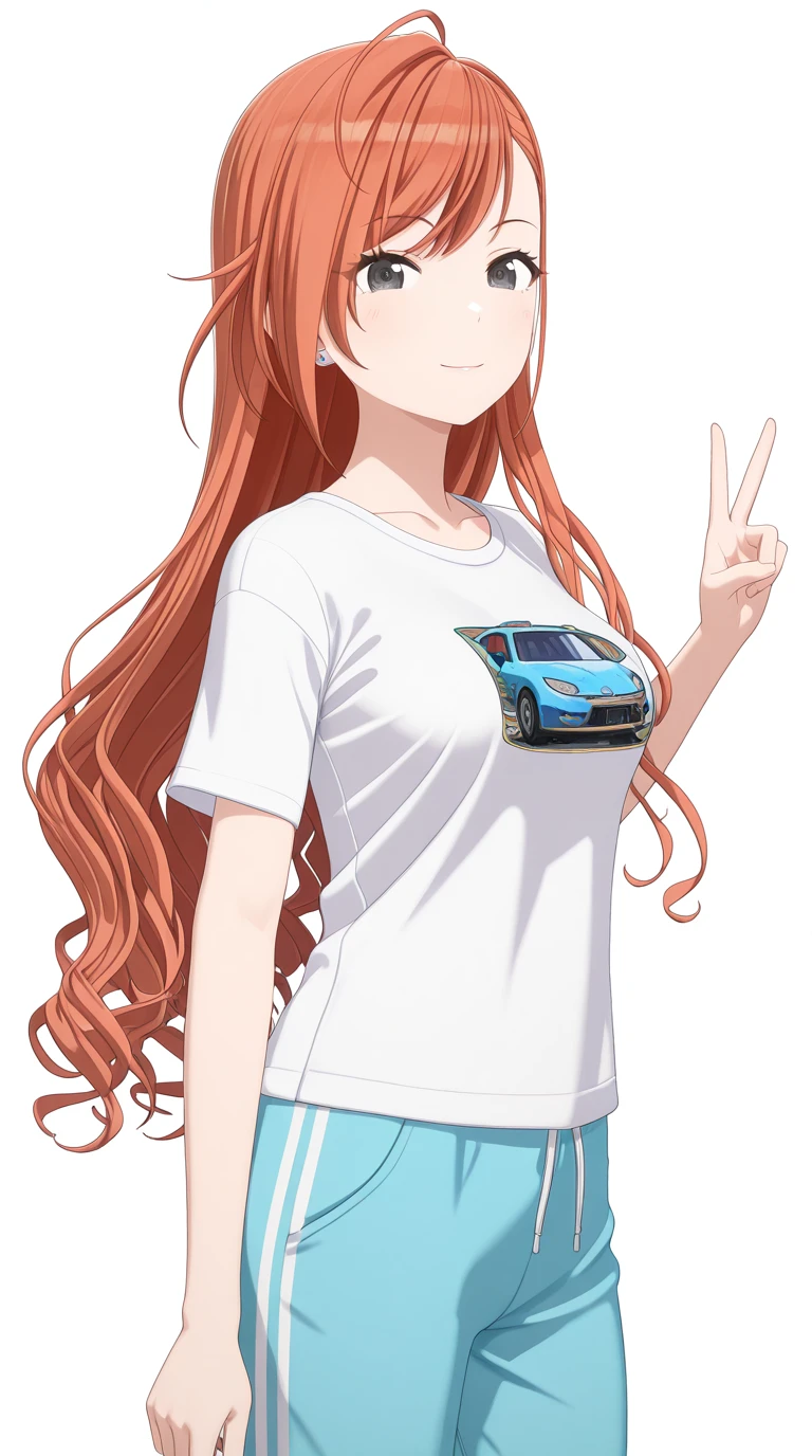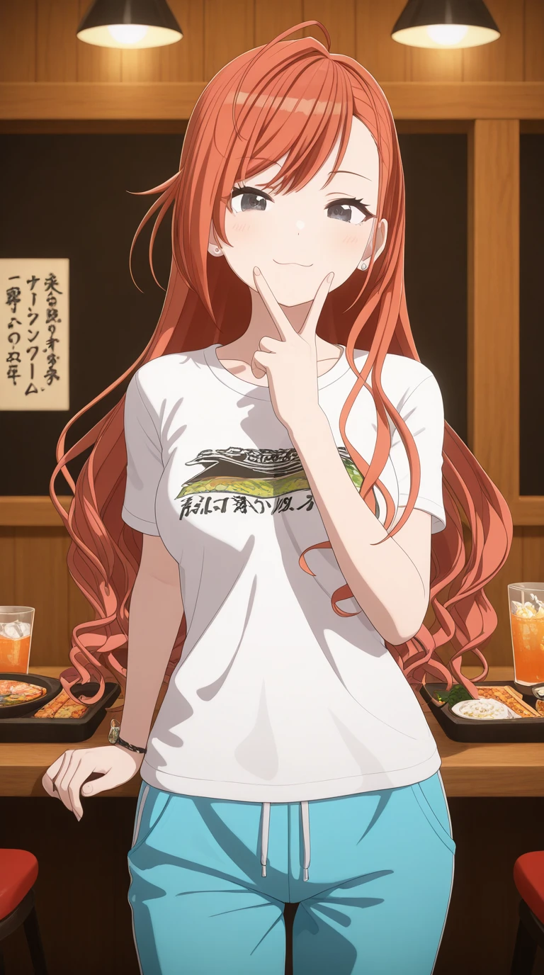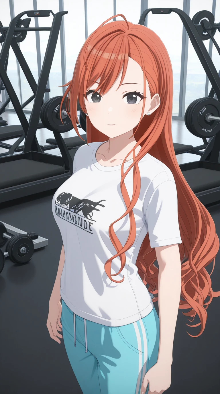 natsuha arisugawa, long hair, bangs, ahoge, red hair, orange hair, black eyes, mature female, medium breasts, 3d