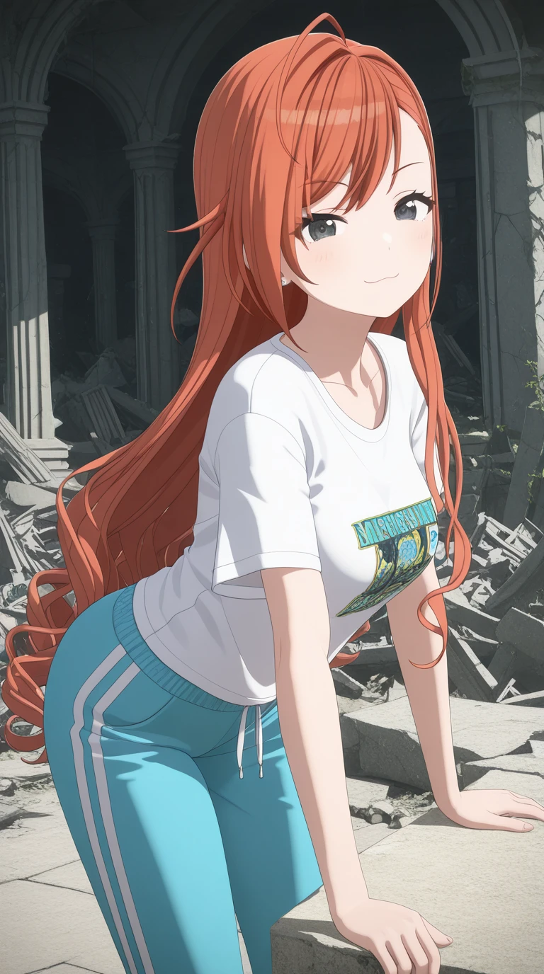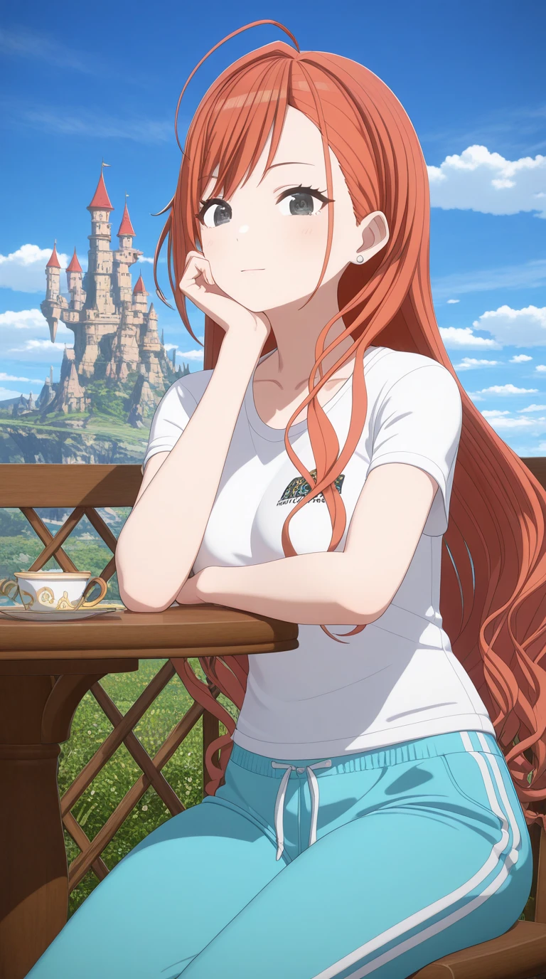natsuha arisugawa, long hair, bangs, ahoge, red hair, orange hair, black eyes, mature female, , 3d