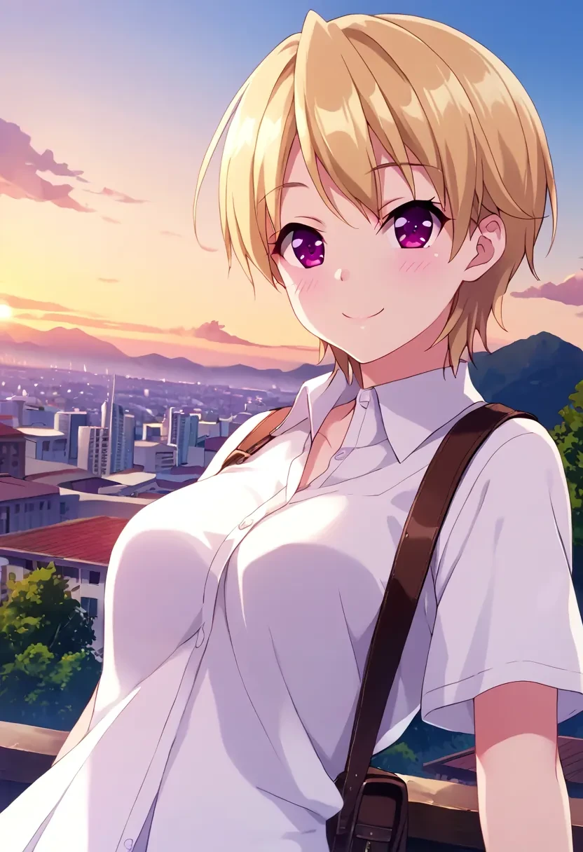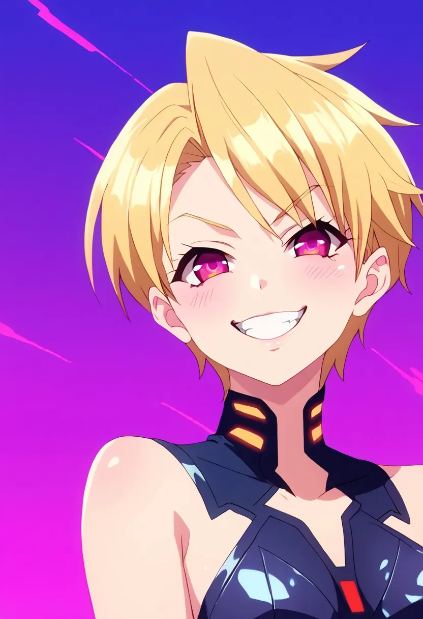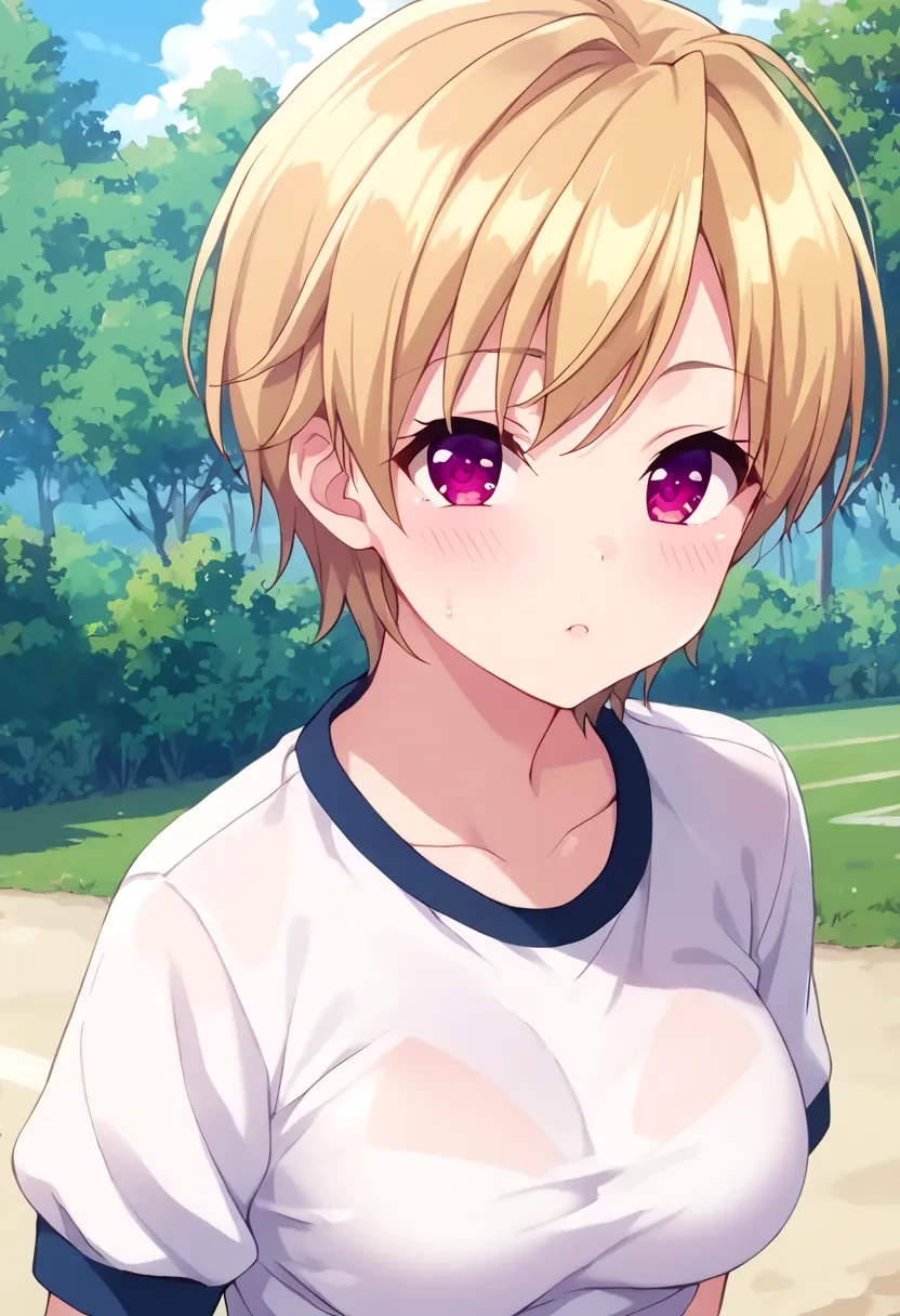 Azuma Haruki, short hair, blonde hair, purple eyes, pink eyes