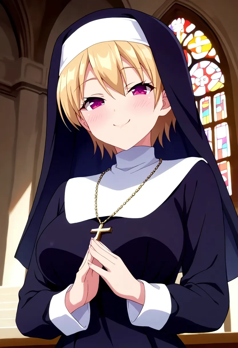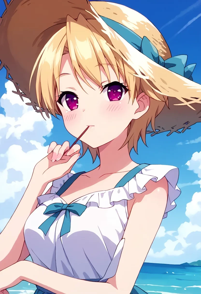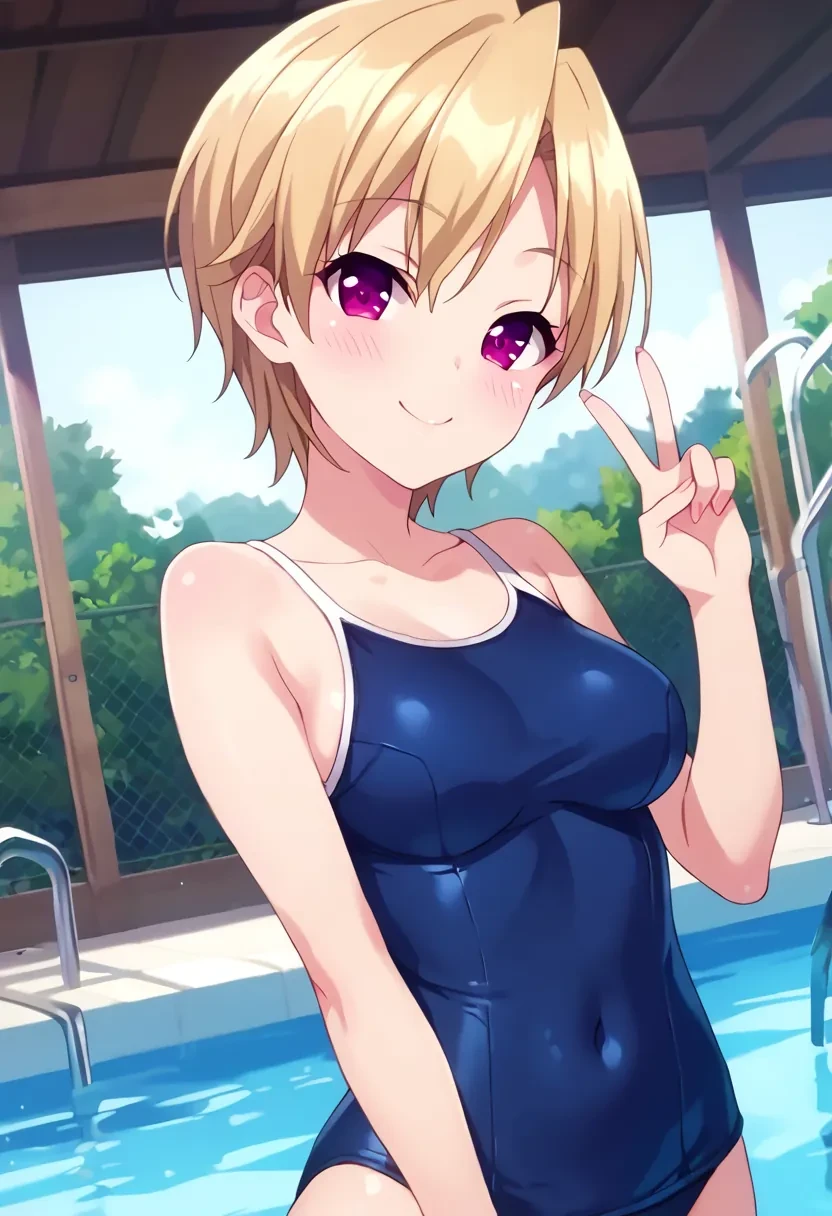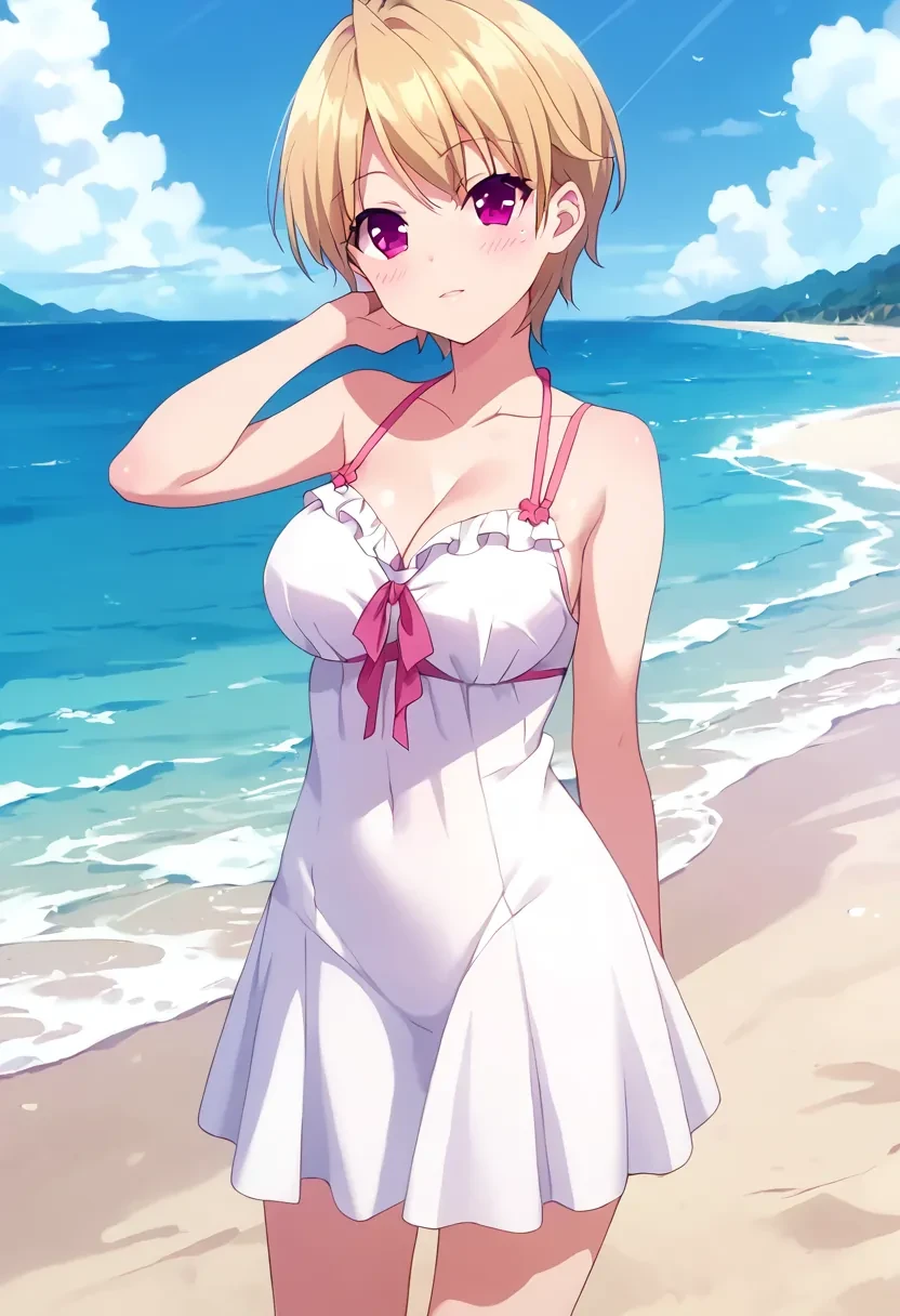 Azuma Haruki, short hair, blonde hair, purple eyes, pink eyes
