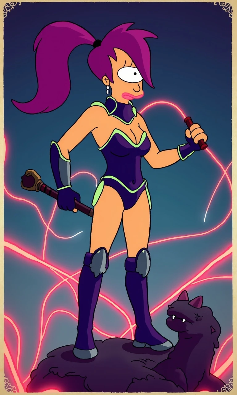 As the captain of the Planet Express ship, Leela is often the voice of reason and responsibility among the crew, frequently saving Fry and Bender from their mishaps. Despite her tough exterior and occasional impatience, she is a caring individual who deeply values her friends and stands up for causes she believes in, such as freedom and the environment. Throughout the series, Leela grapples with her identity and eventually discovers the truth about her mutant heritage and reconnects with her parents. Her relationship with Fry is a significant arc of the show, evolving from friendship to romantic feelings.