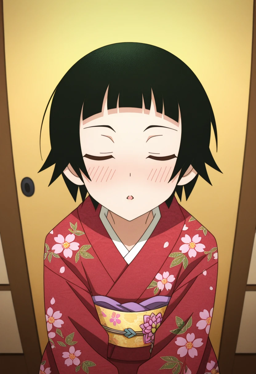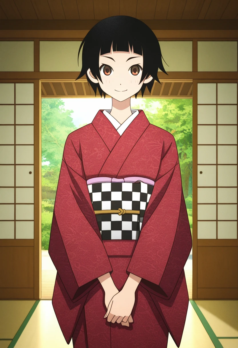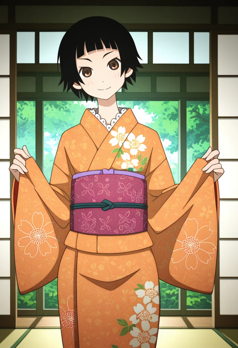 japanese clothes, kimono, "floral print" or "checkered clothes" or "yagasuri"