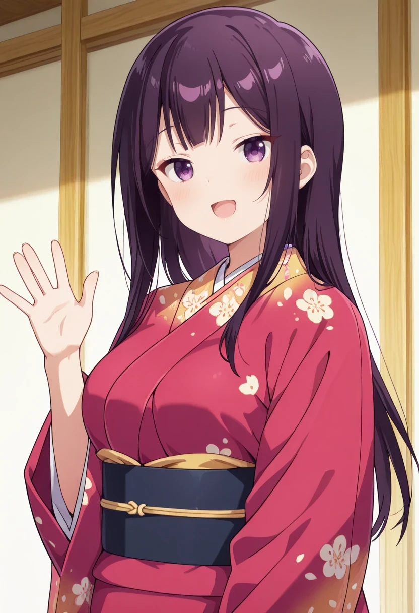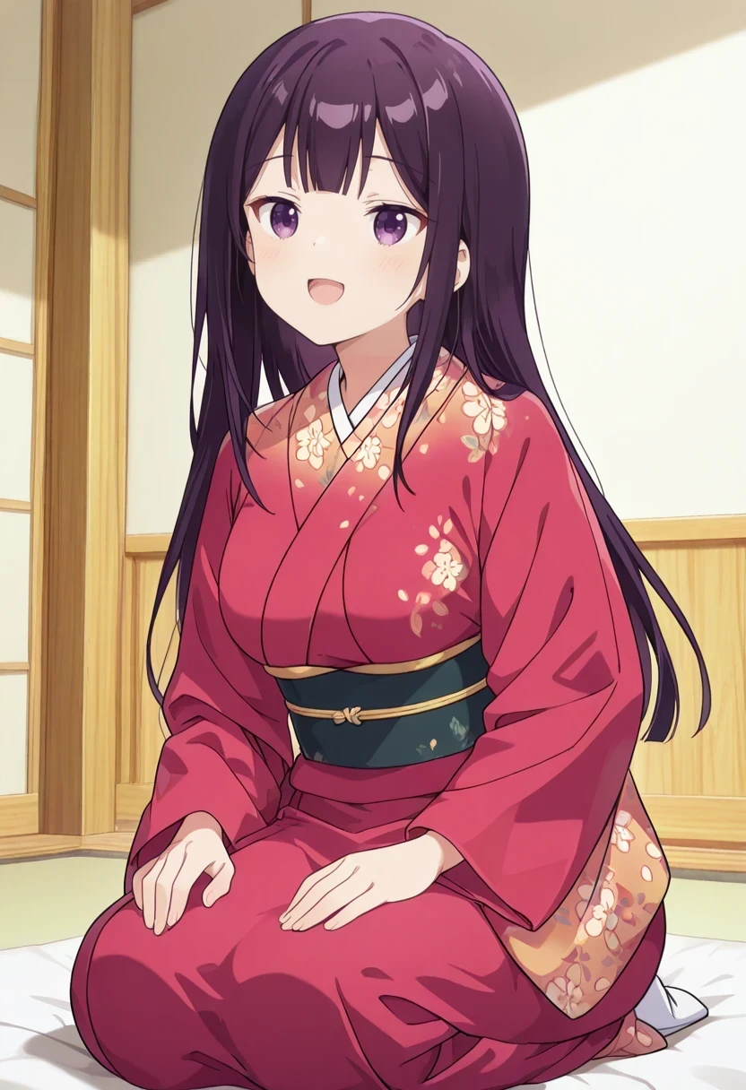 japanese clothes,floral print,red kimono,
