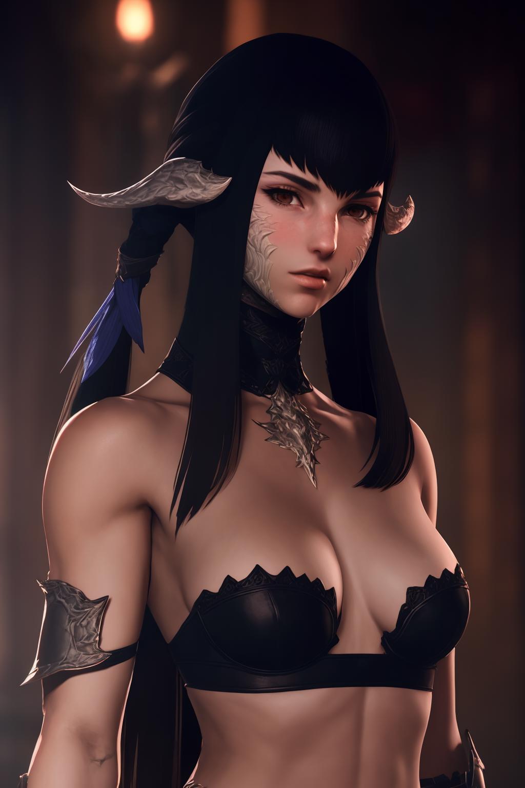 Tag: au ra, Yugiri, bangs, black hair, avatar \(ff14\),yellow eyes, armor,