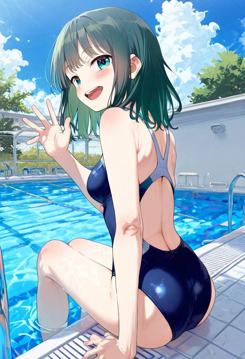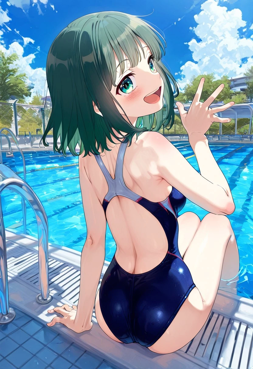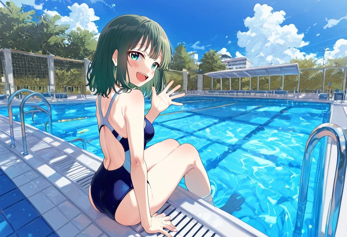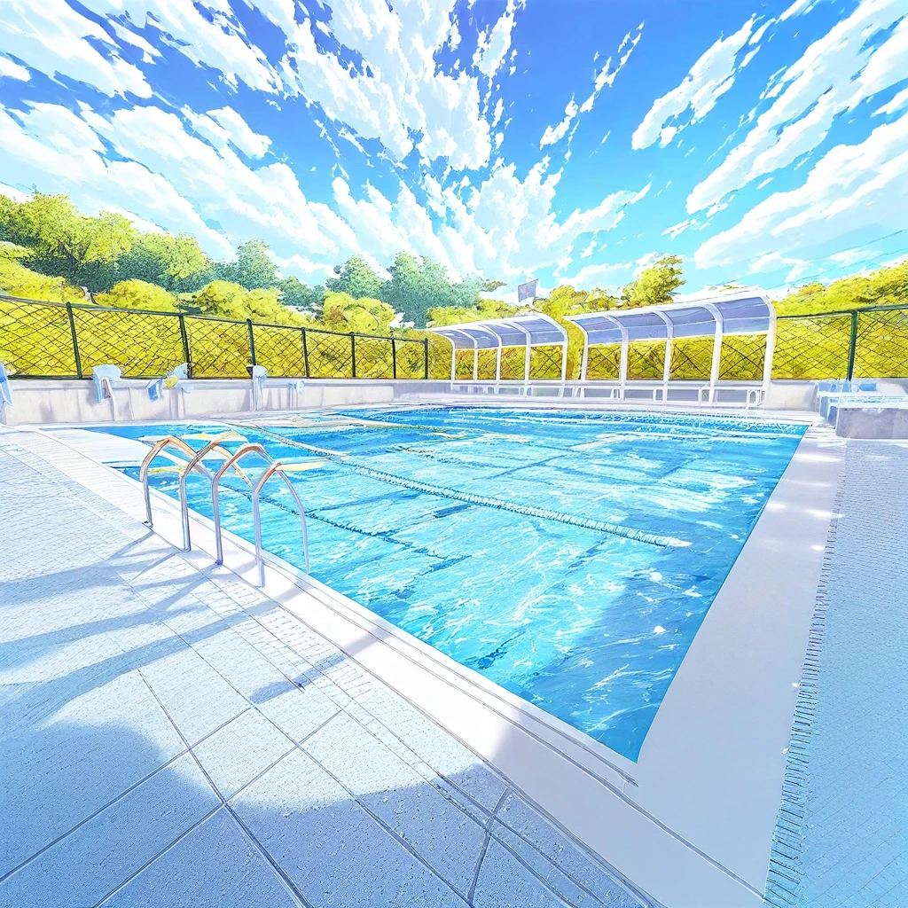 outdoors,pool ladder, poolside, white pool ladder,reflected water,blue sky,white roof,treeMy reserch (Low LR ver)