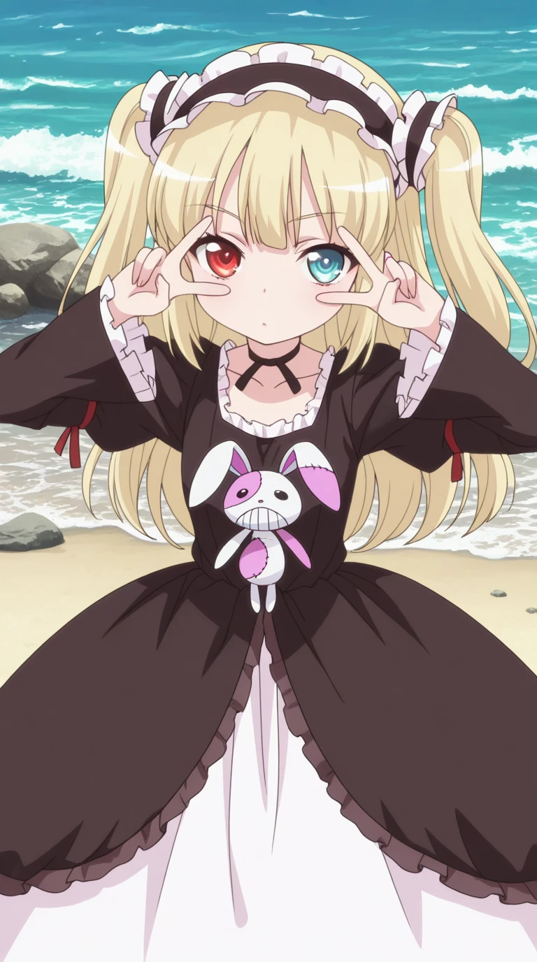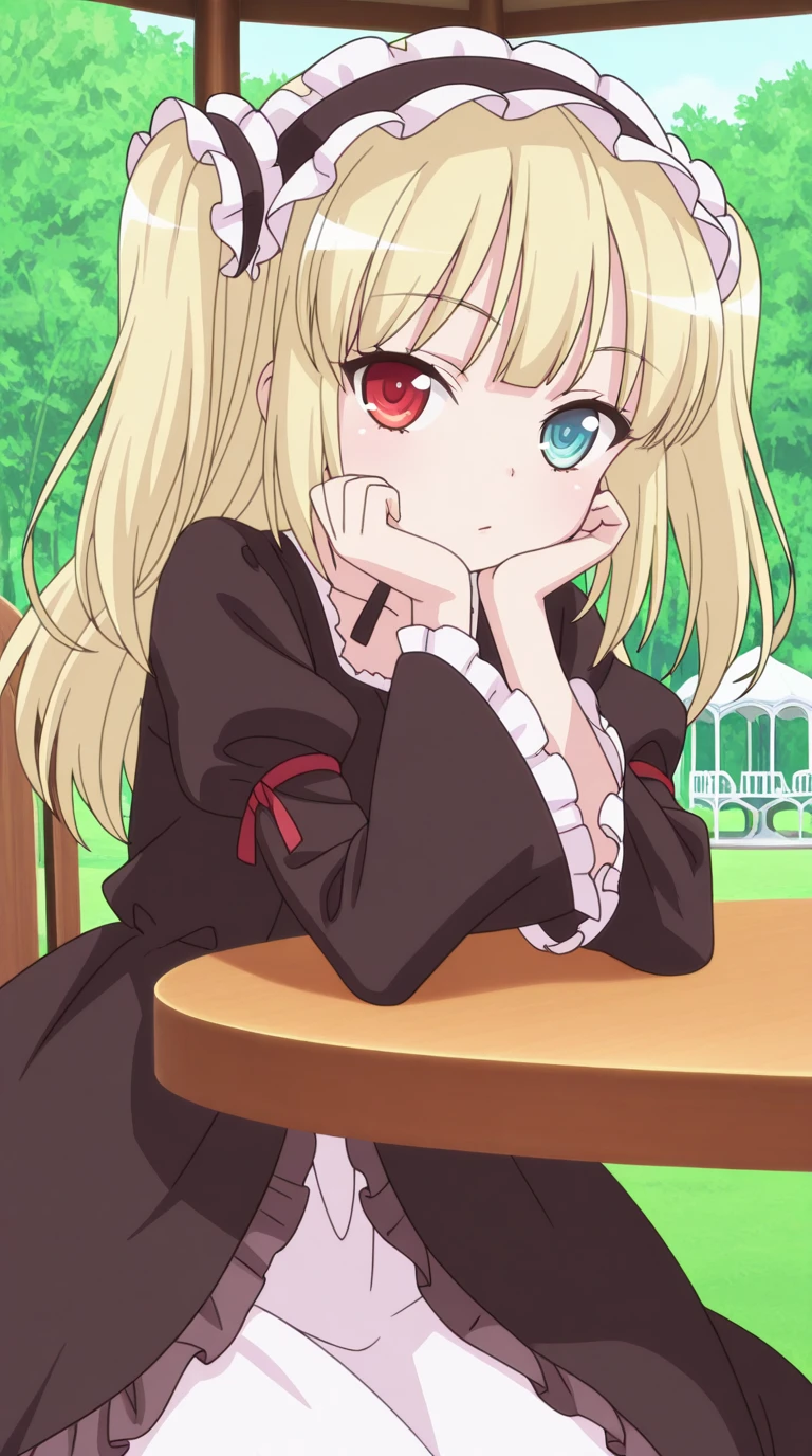 kobato hasegawa, hasegawa kobato, long hair, blonde hair, red eyes, blue eyes, heterochromia, two side up, anime screencap,