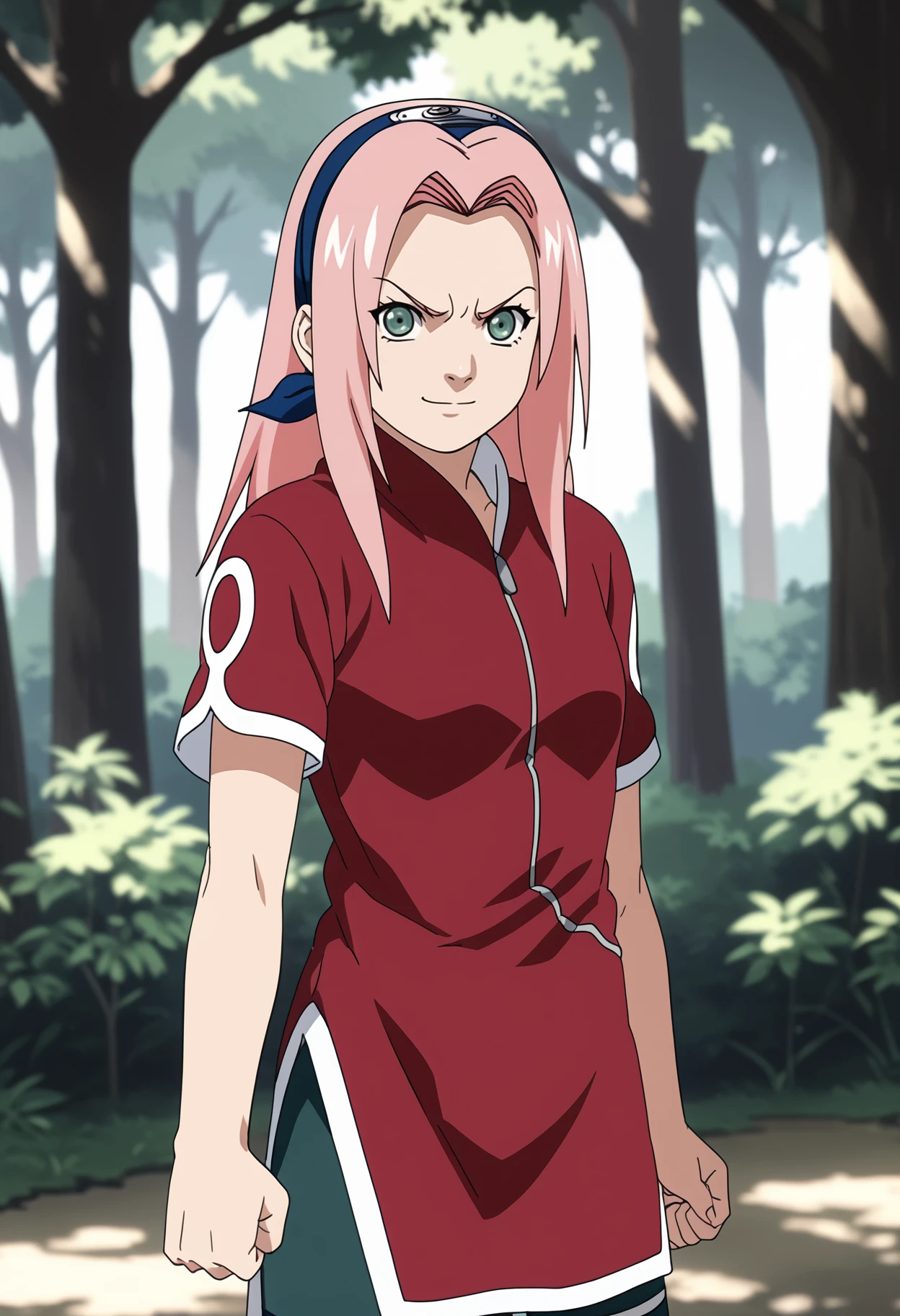 Basic prompts : 1girl, haruno sakura, pink hair, long hair, green eyes