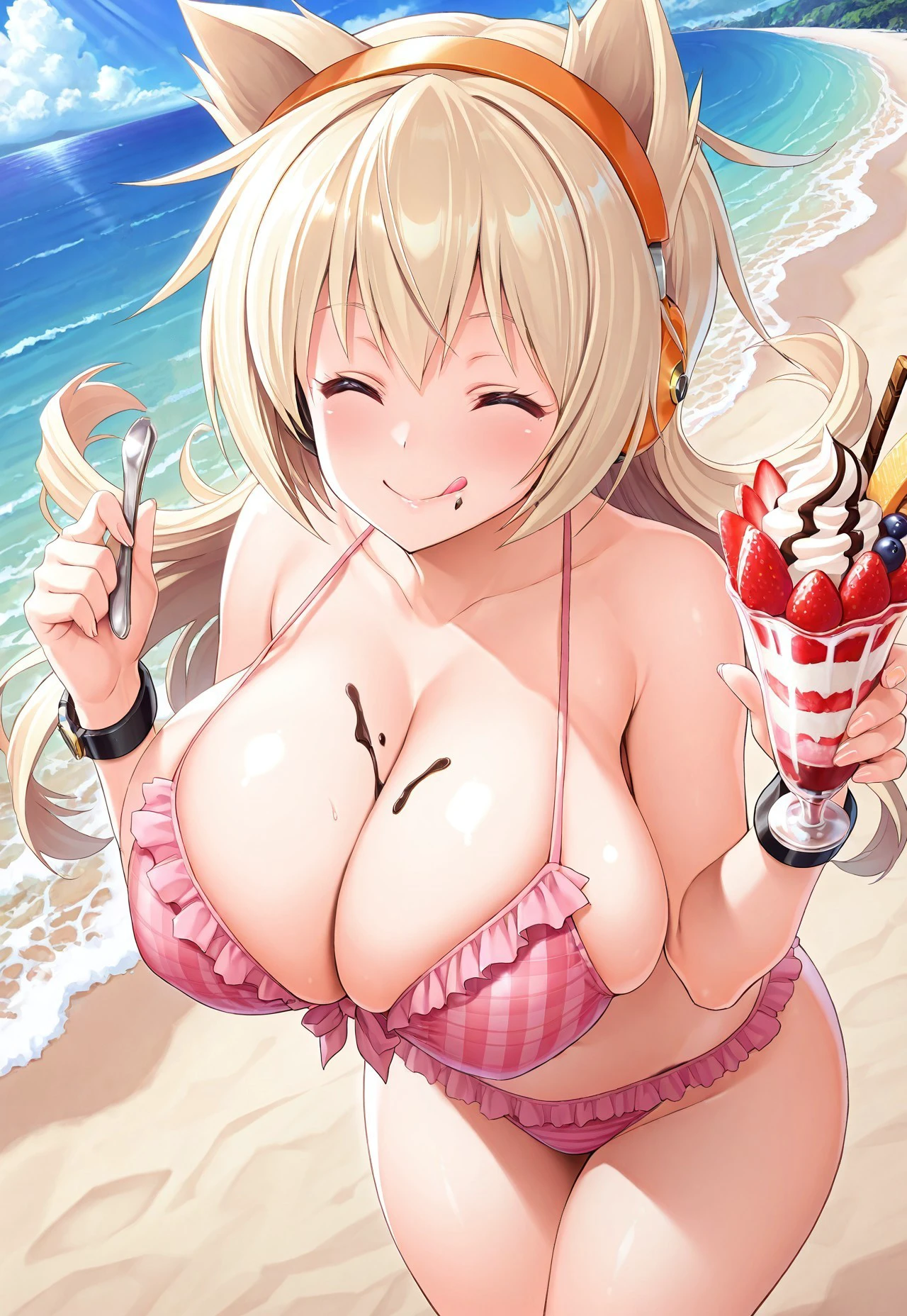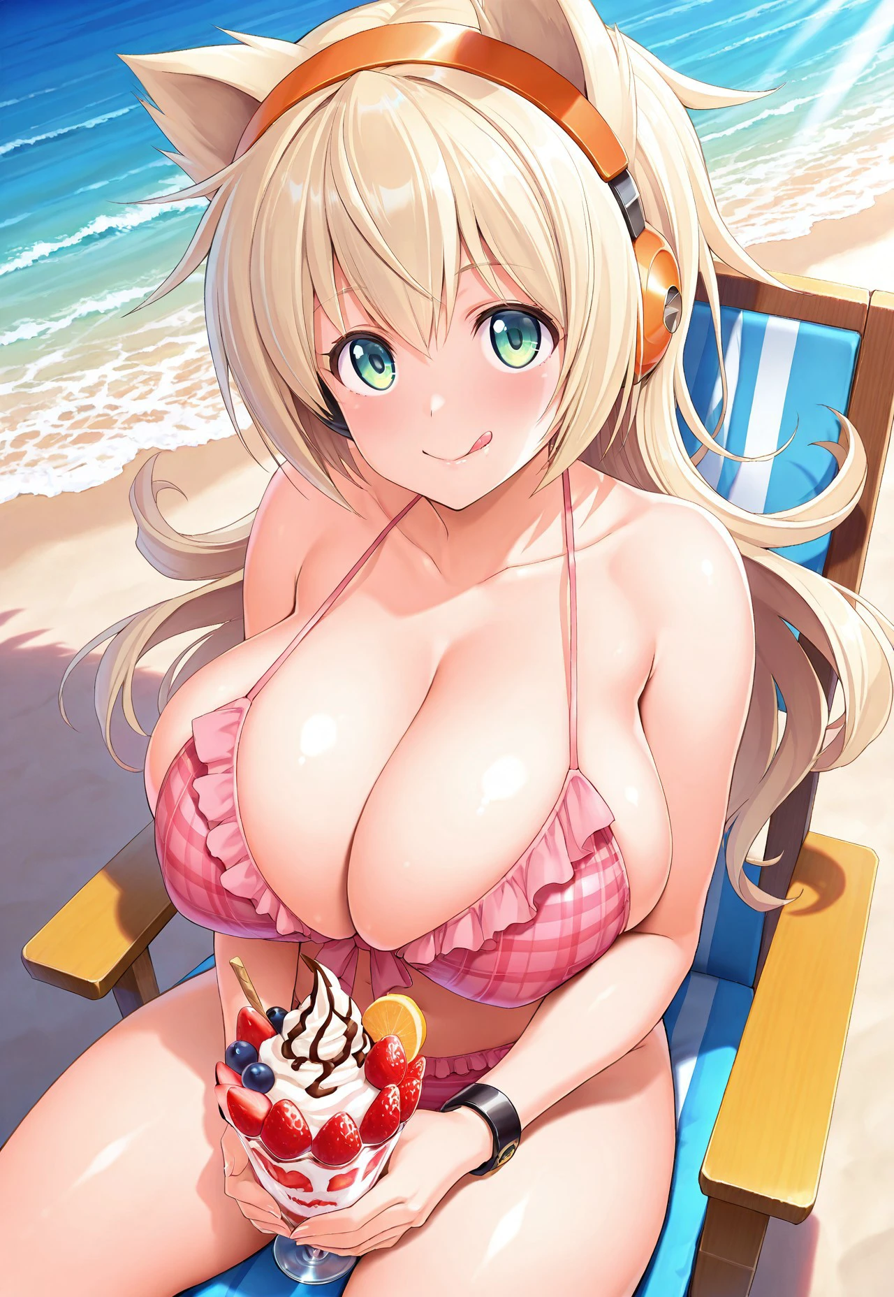 Tags: Cecilia Cello, long hair, blonde hair, Kemonomimi, v bangs, wavy hair, green eyes, huge breasts, curvy,