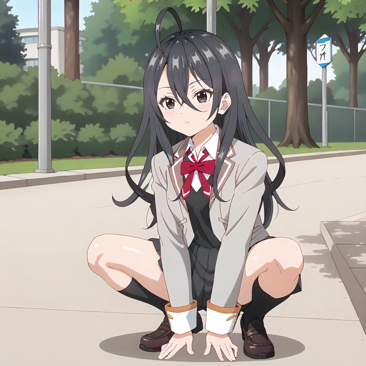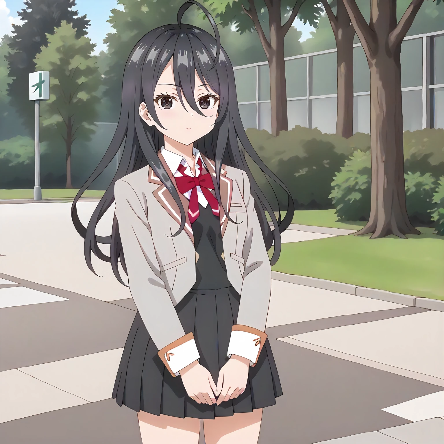 AyanoKimishima,1girl,black hair,ahoge,long hair,black eyes,