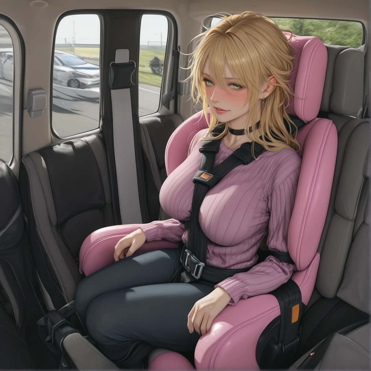 Trained on actual adult carseats it went full bondage on its own in the test training Loras so it can't be posted as SFW.