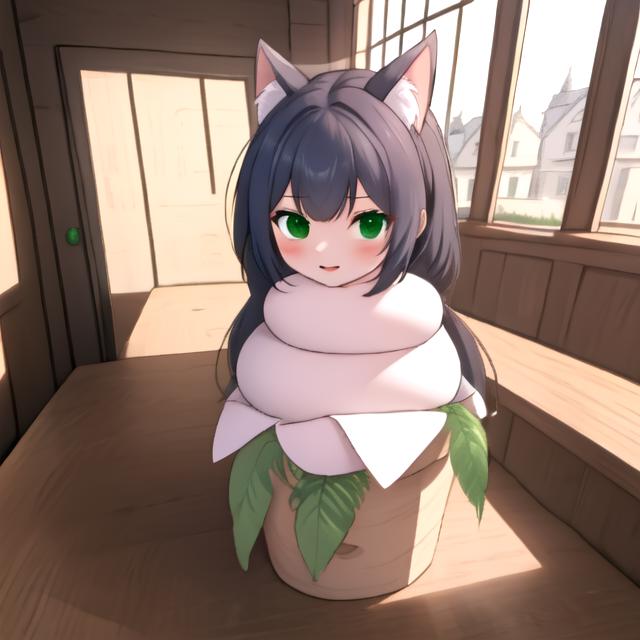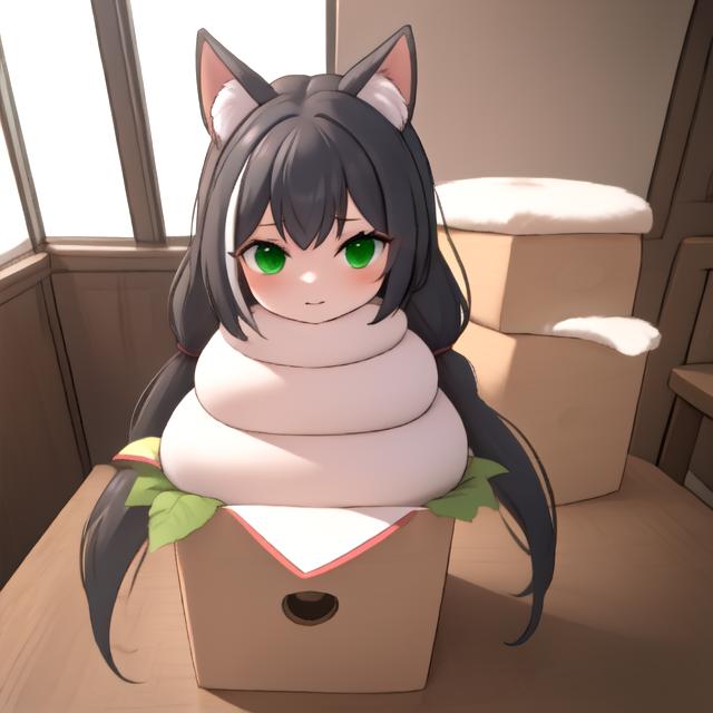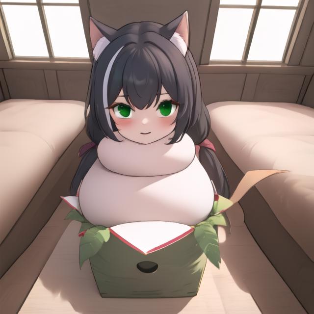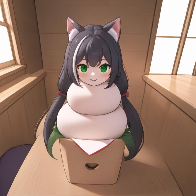 Sleep (cat sleep mask is unstable, but can appear with "mask", or "mask on head", but so might other masks): karylsleep, cat ears, cat tail, shirt, short shorts, pajamas,