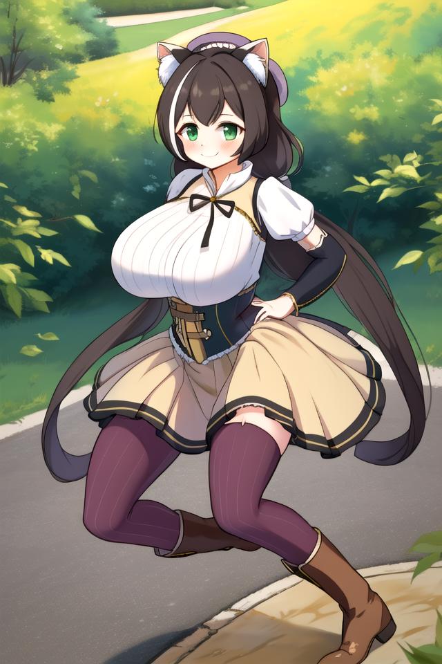 Overload (this is the most unstable one, don't expect perfection): karyloverload, cat ears, cat tail, black dress, hairband, blue veil, black detached sleeves, wide sleeves, white gloves, fingerless gloves, black thighhighs,