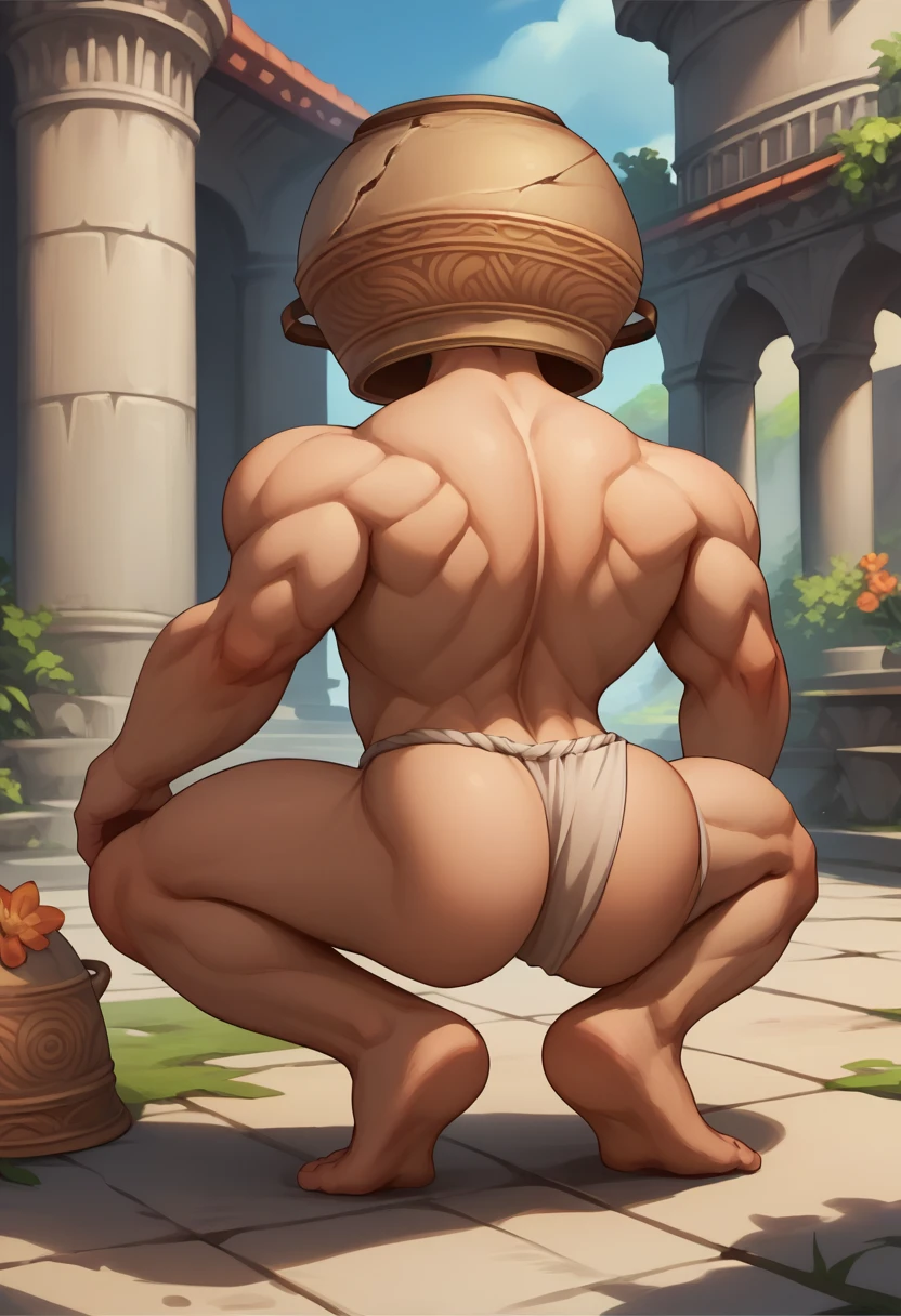squatting, from behind, looking back, ass, full body