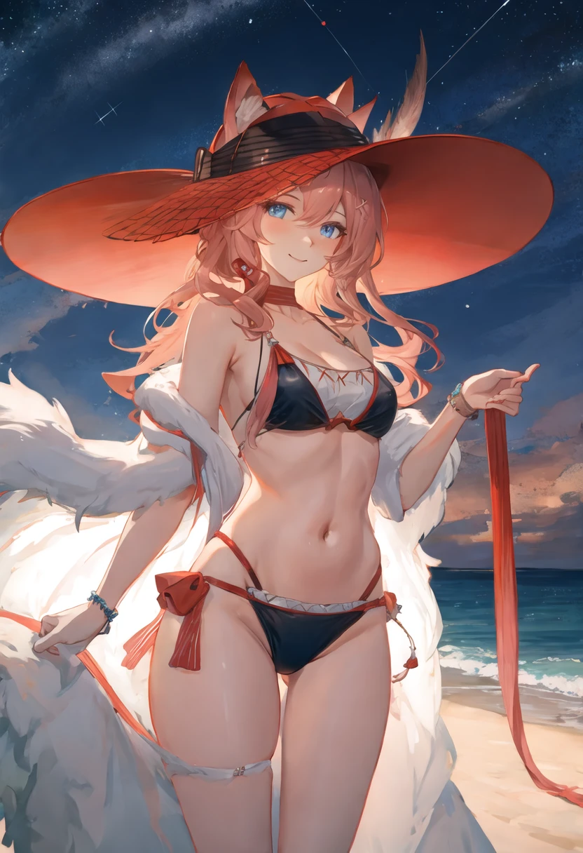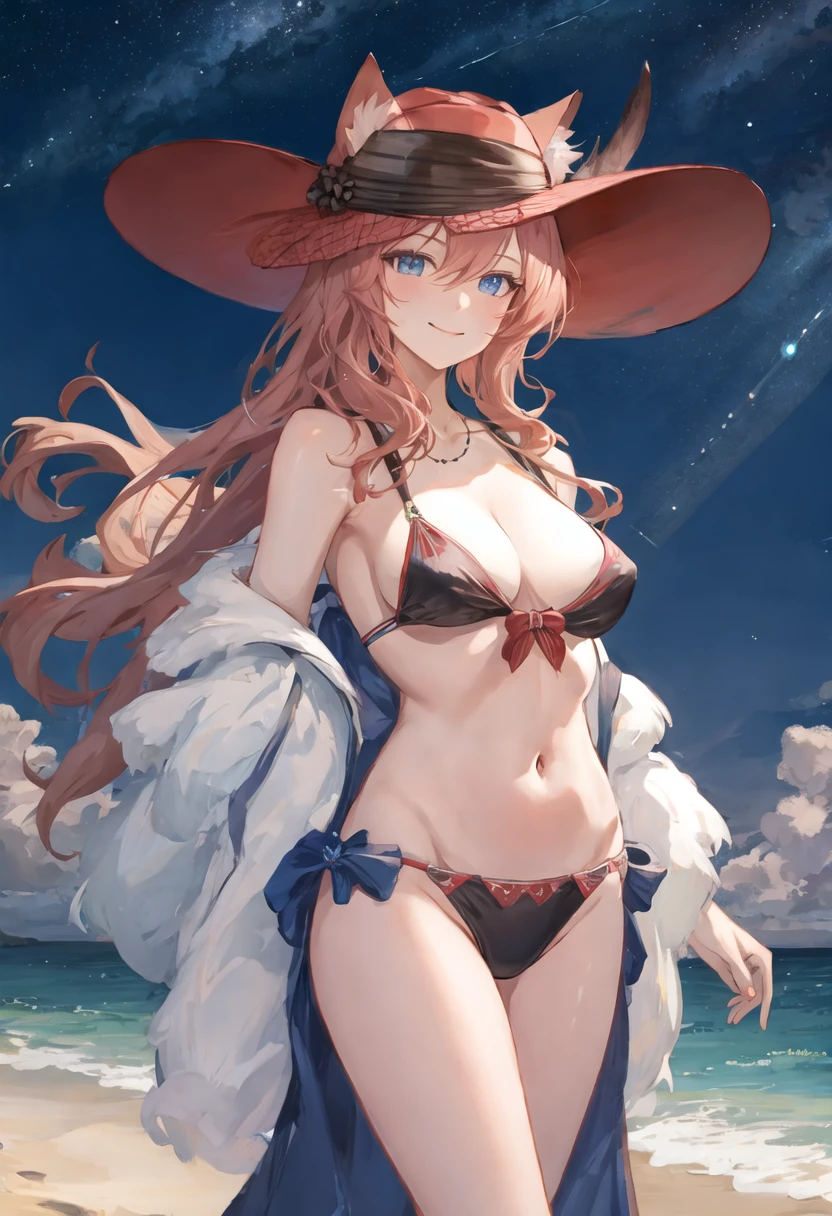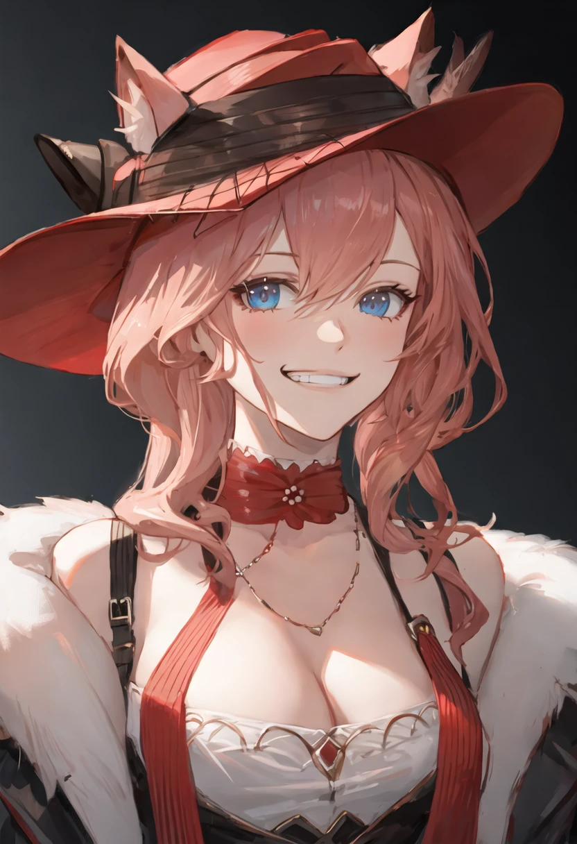 - The pruned character tags are animal_ears, blue_eyes, breasts, long_hair, bangs, cat_ears, pink_hair, ears_through_headwear, red_headwear, hair_between_eyes, large_breasts, hat. You can add them into prompts when core features (e.g. hair color) of character is not so stable.