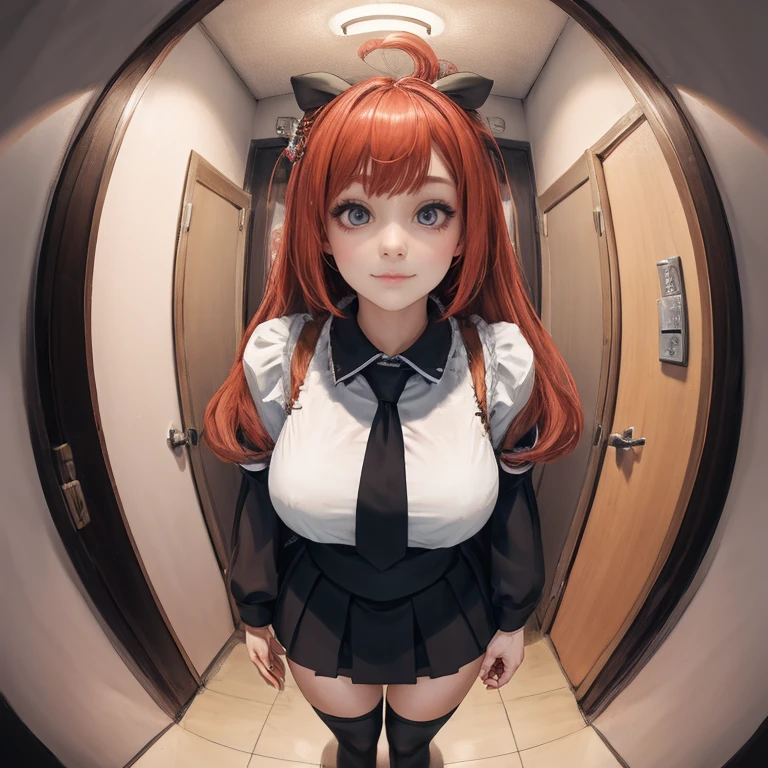 1girl, pov, peephole, looking at viewer, facing viewer, leaning forward, fisheye, solo,