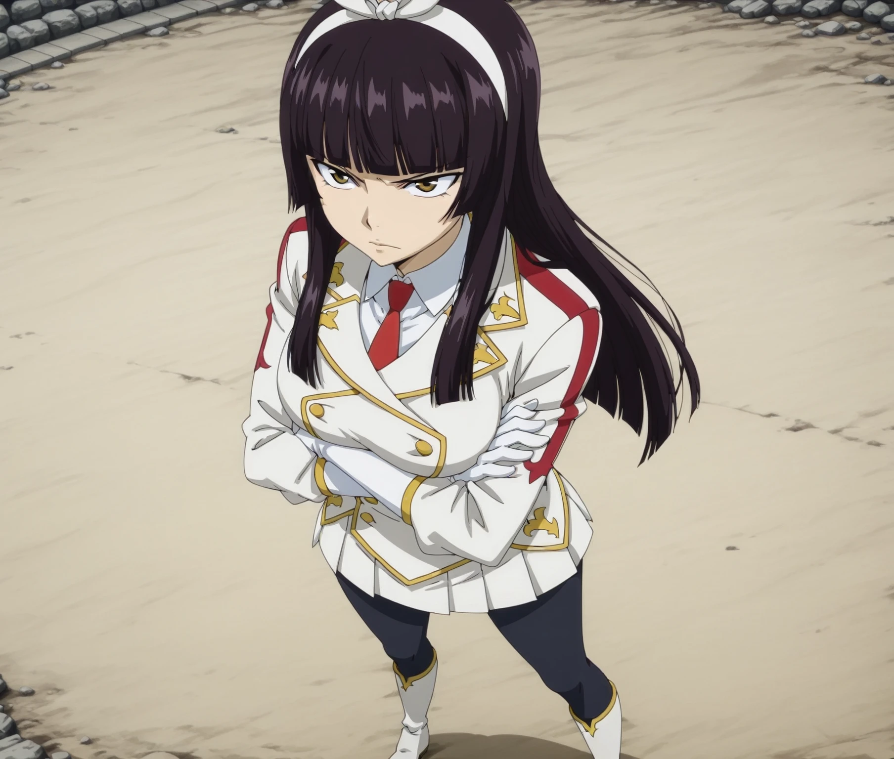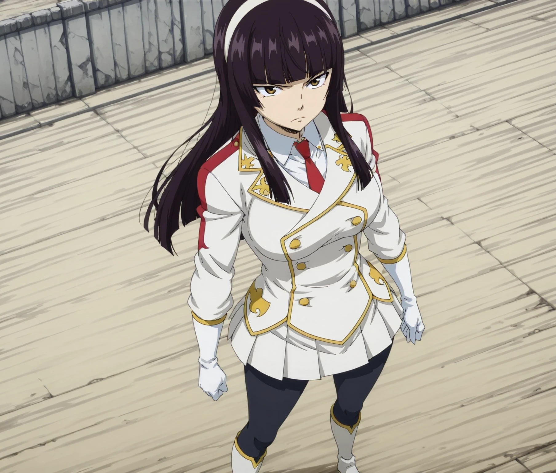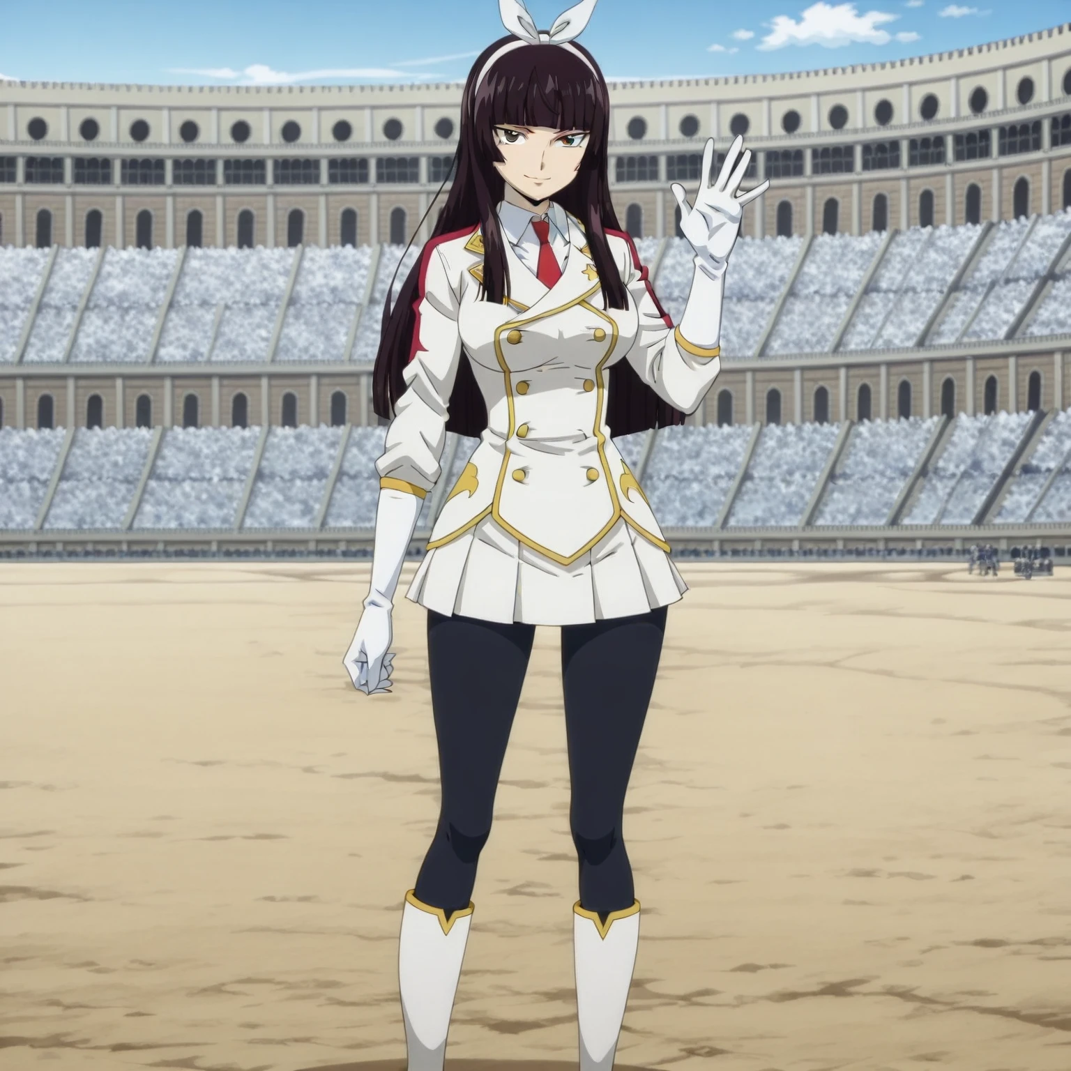 1girl,kagura mikazuchi,long hair,black hair,hairband,bangs,gloves,necktie,pantyhose,boots