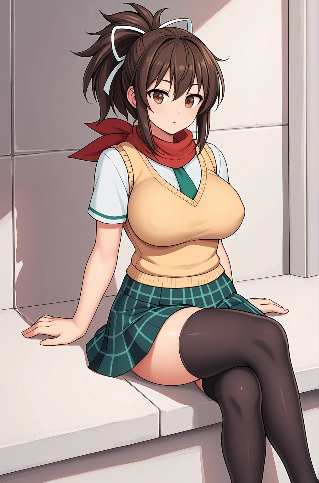 Trigger Words for shinobi outfit are "asuka_shinobi_outfit, sweater vest, black thighhighs, necktie, plaid skirt, loafers".