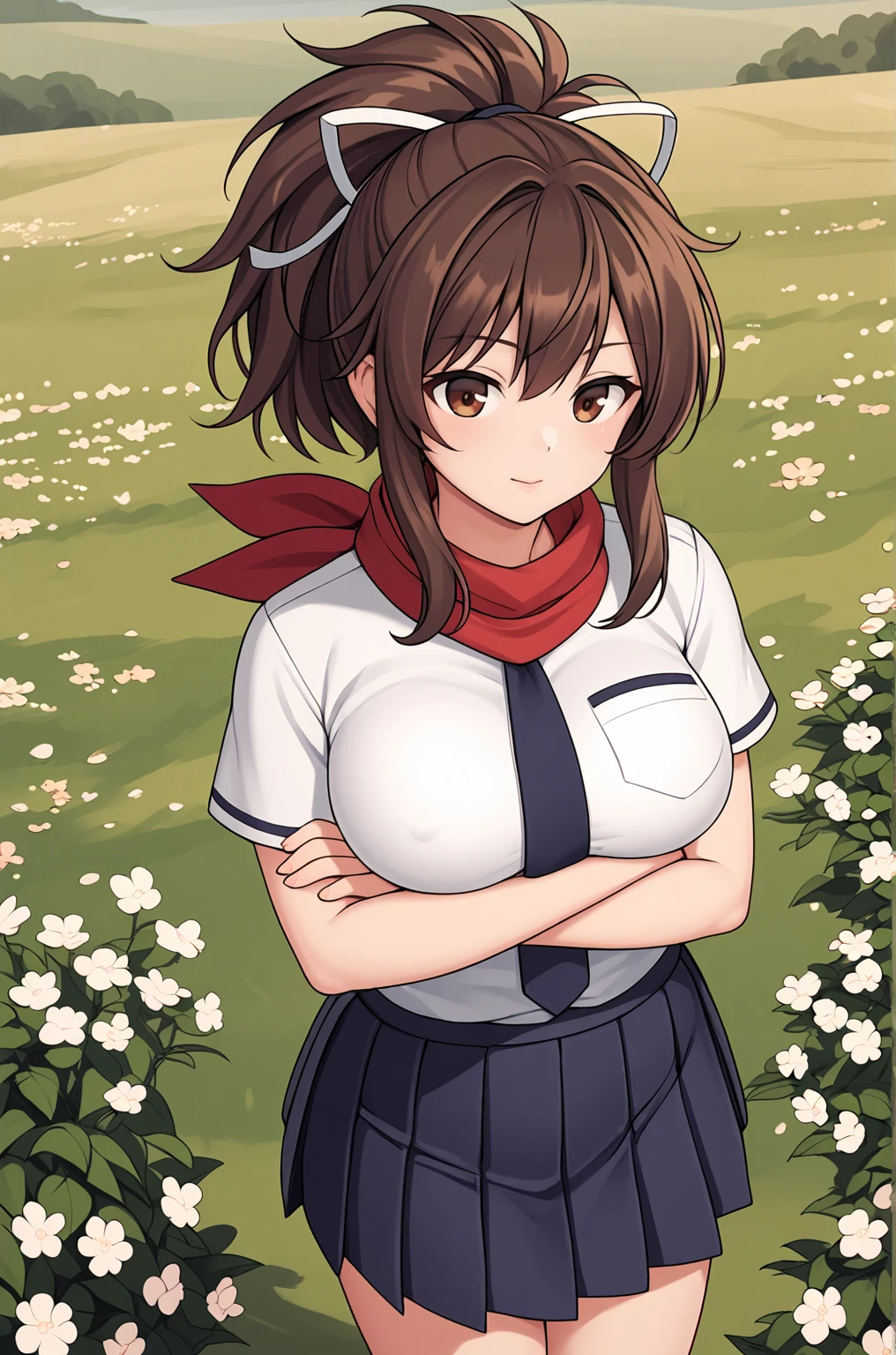 Trigger Word for the LoRA are "Asuka_XL, brown eyes, brown hair, ponytail, white ribbon, red scarf, large breasts,".