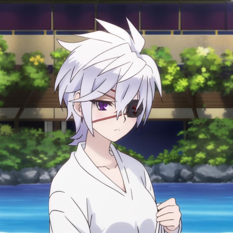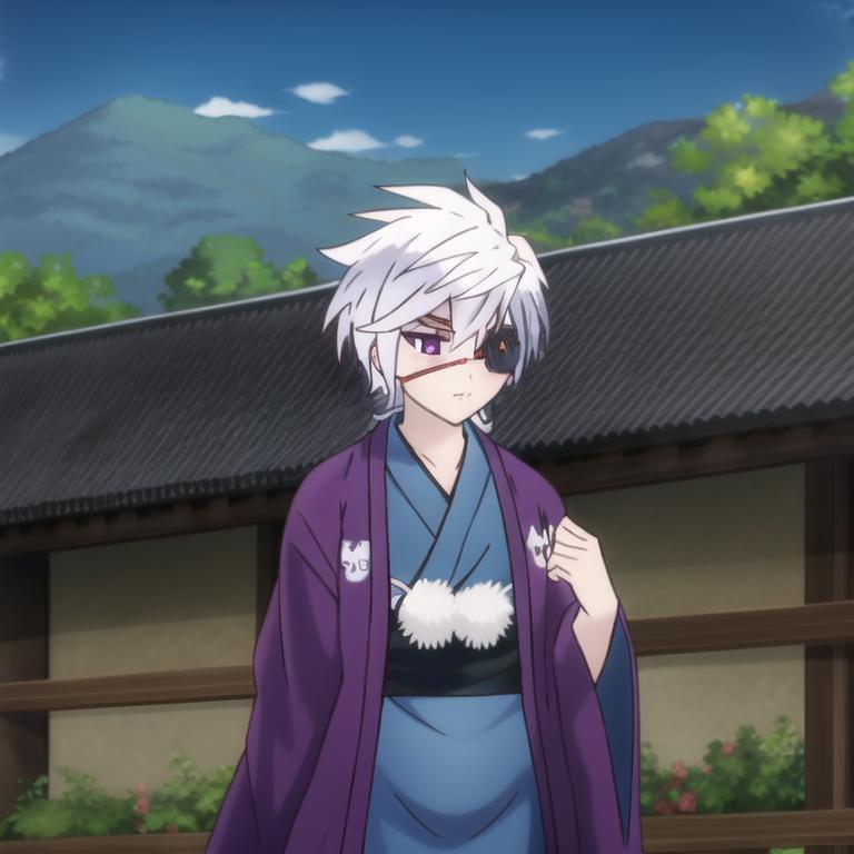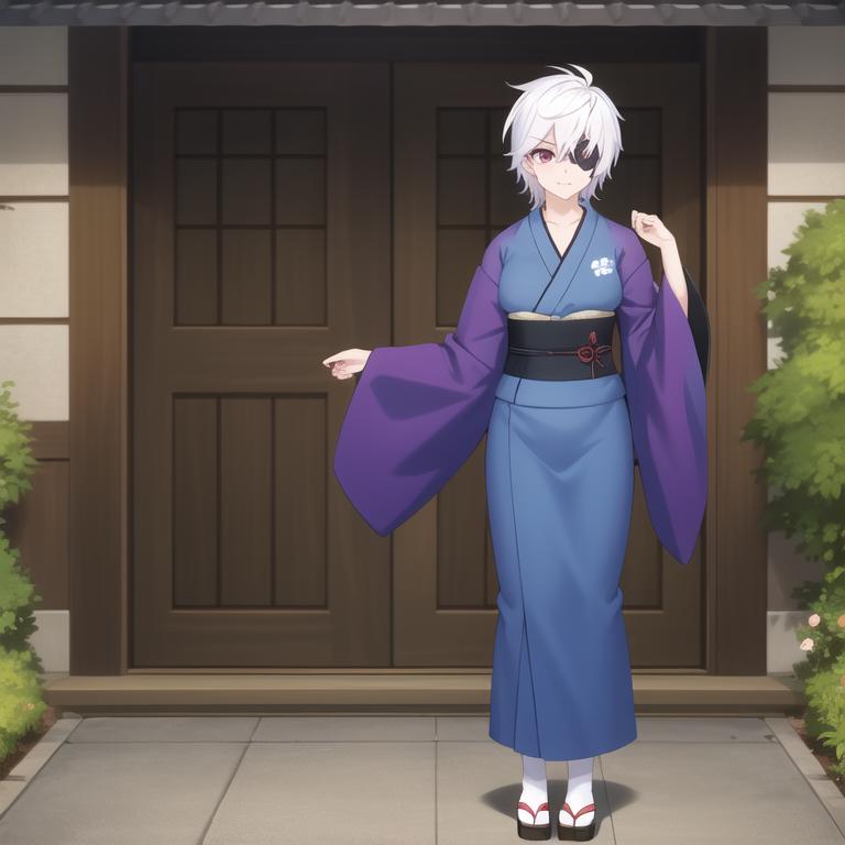 Trigger Word: yugarisou-oboro, eye path on left eye, kimono haori