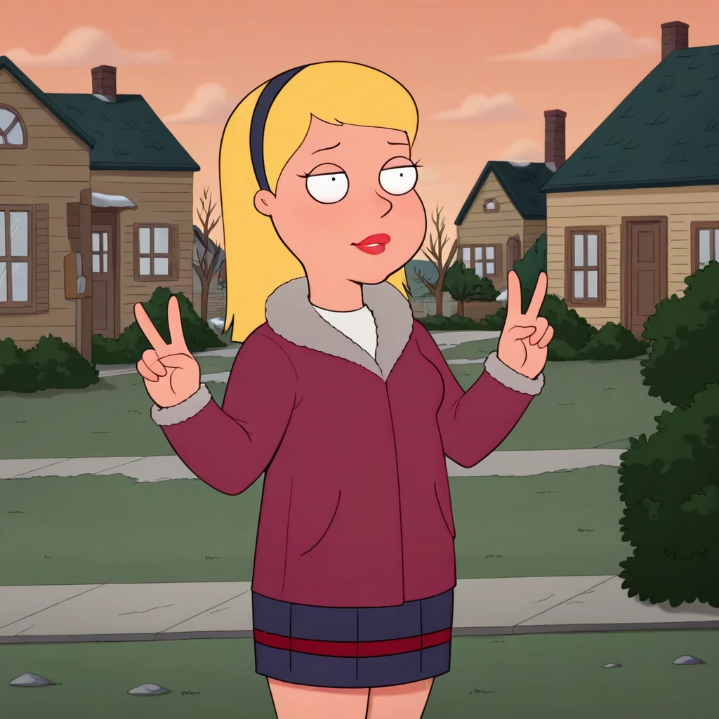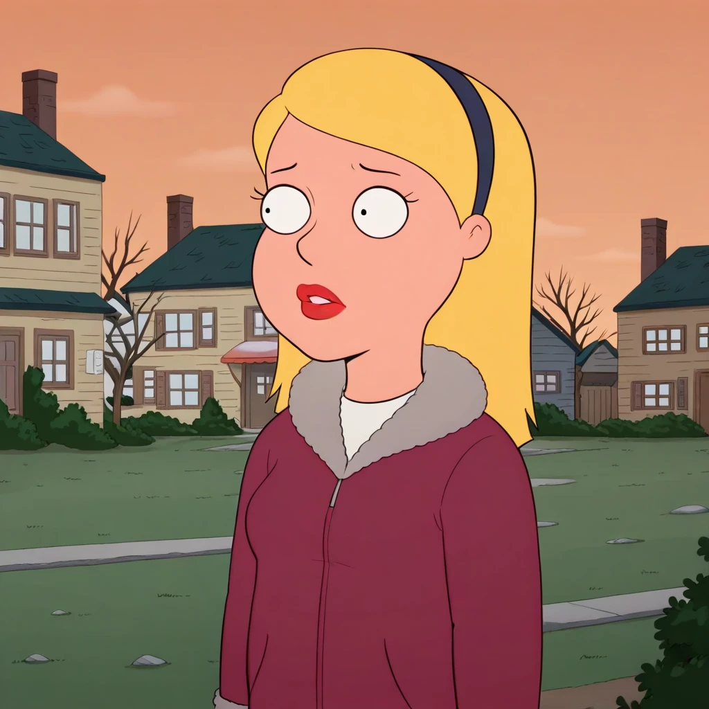 sandyherbert, 1girl, solo, blonde hair, long hair, black eyes, lipstick, hairband