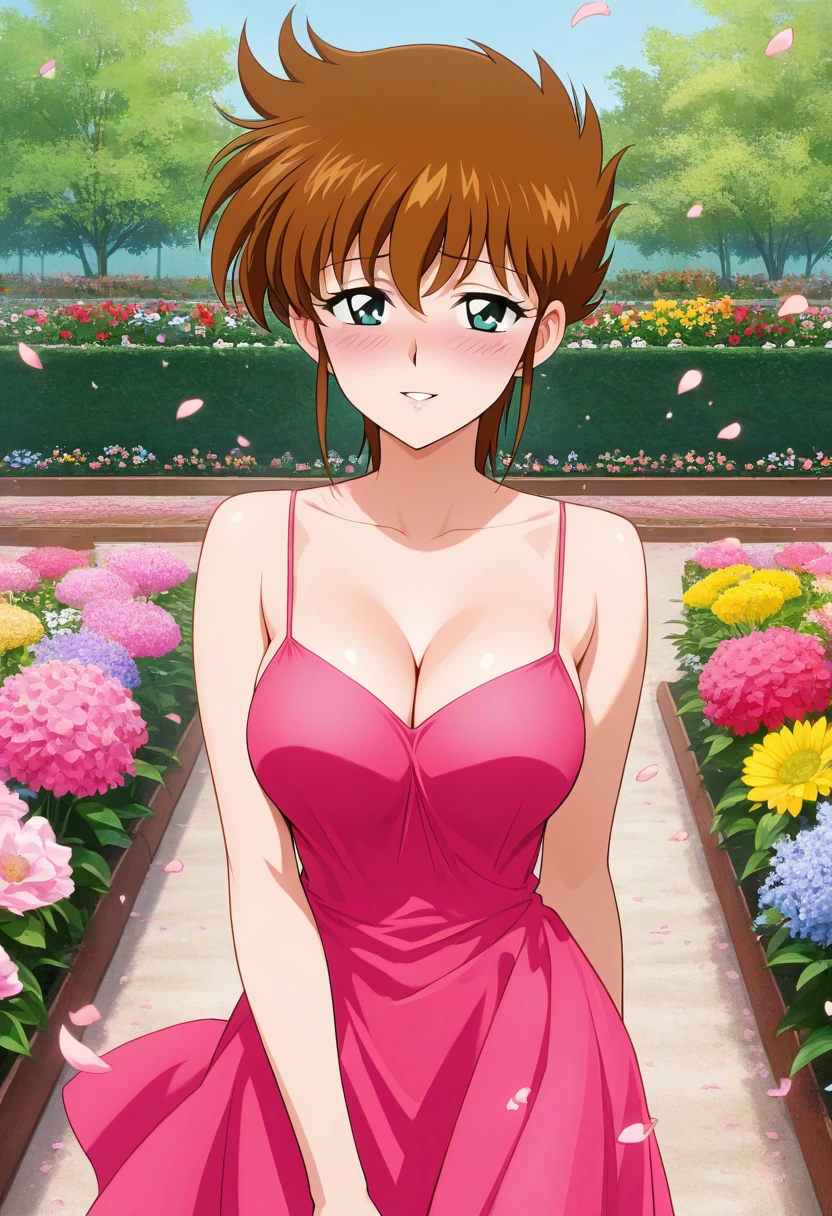 Haruka, Brown Hair, Short Hair, Aqua Eyes, Cleavage,