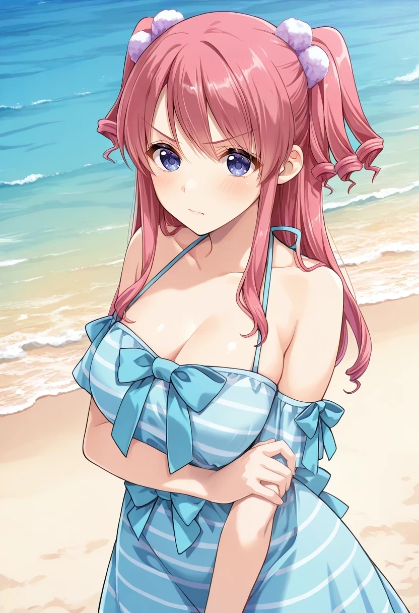 halterneck,striped clothes,blue dress,blue bow,Bikini: