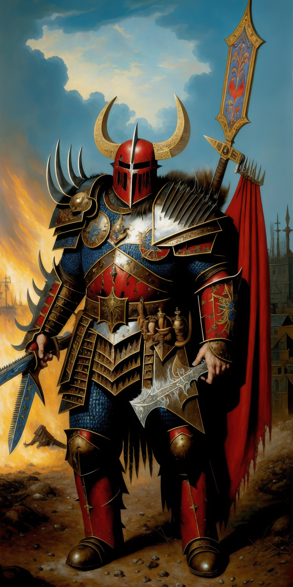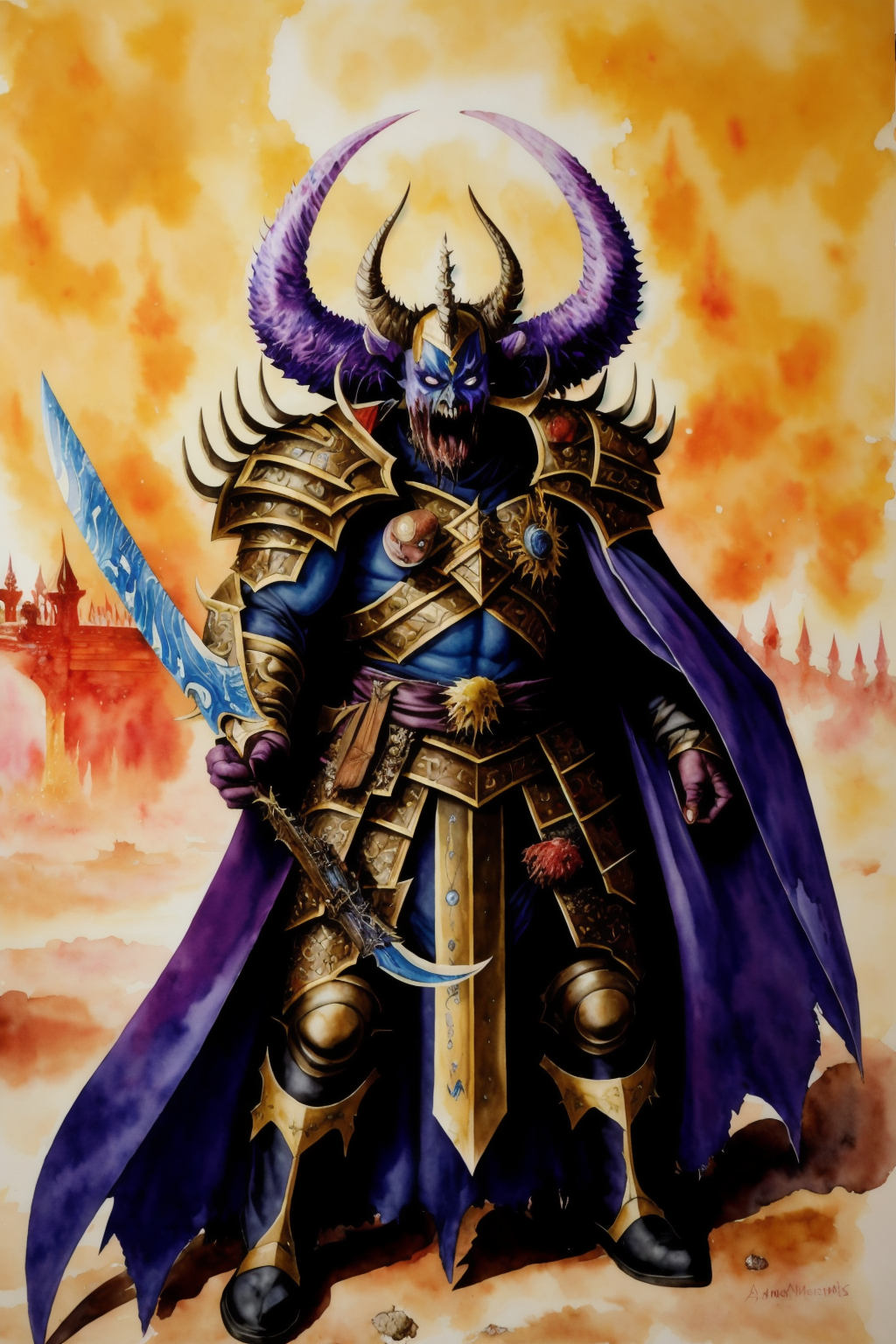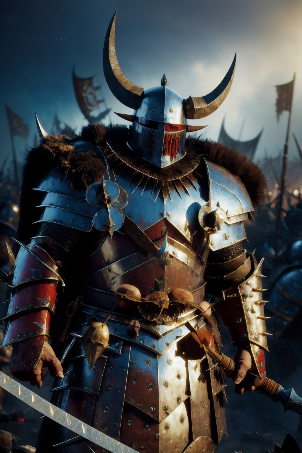 This lora generates chaos warriors and was trained in a booru tag style. Can do undivided or monogod (khorne, tzeentch, nurgle, slaanesh) and also chaos sorcerers. Seems to work best with AnythingV4.5 which has the side effect of making it pretty compatible with anime and memes.
