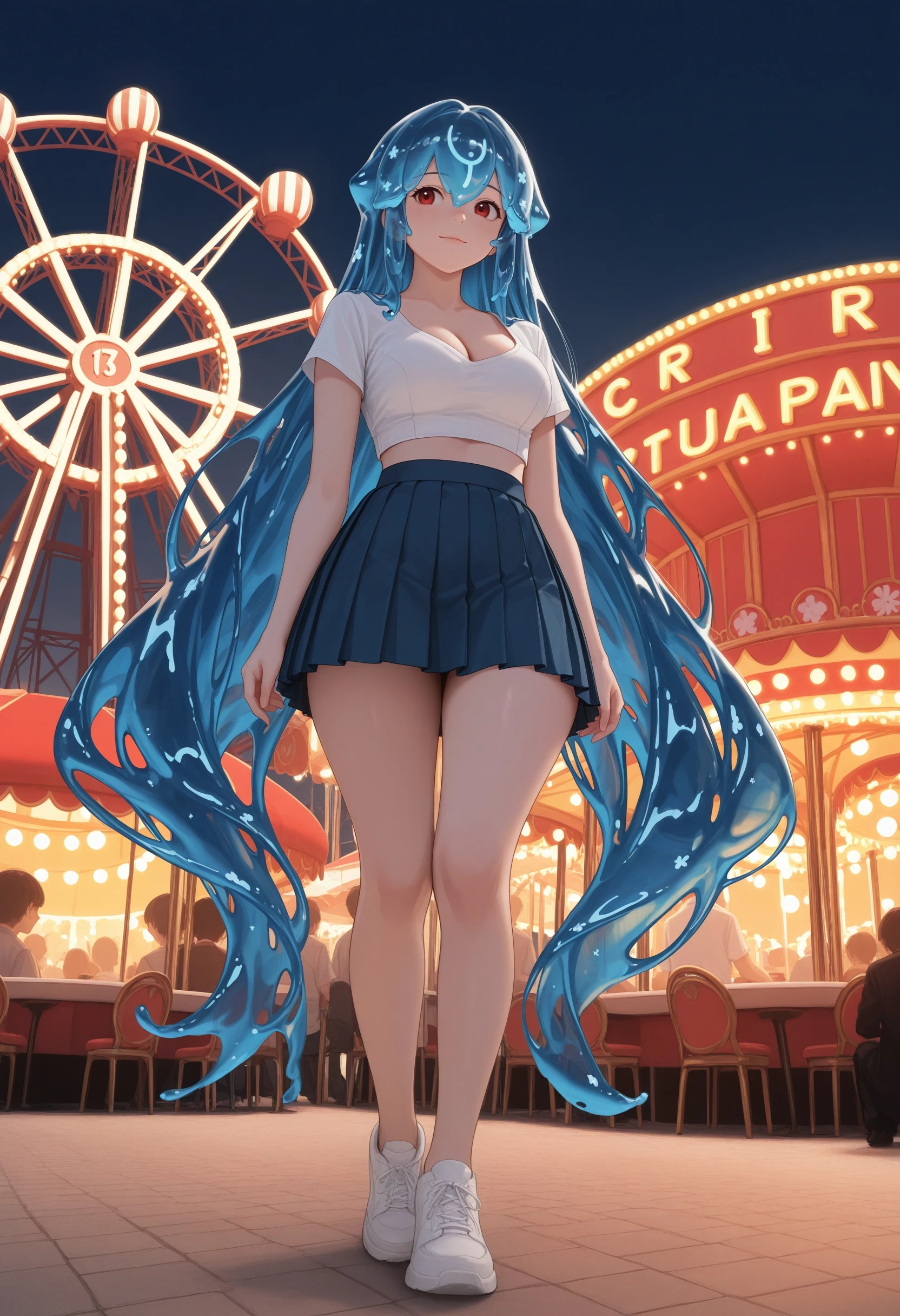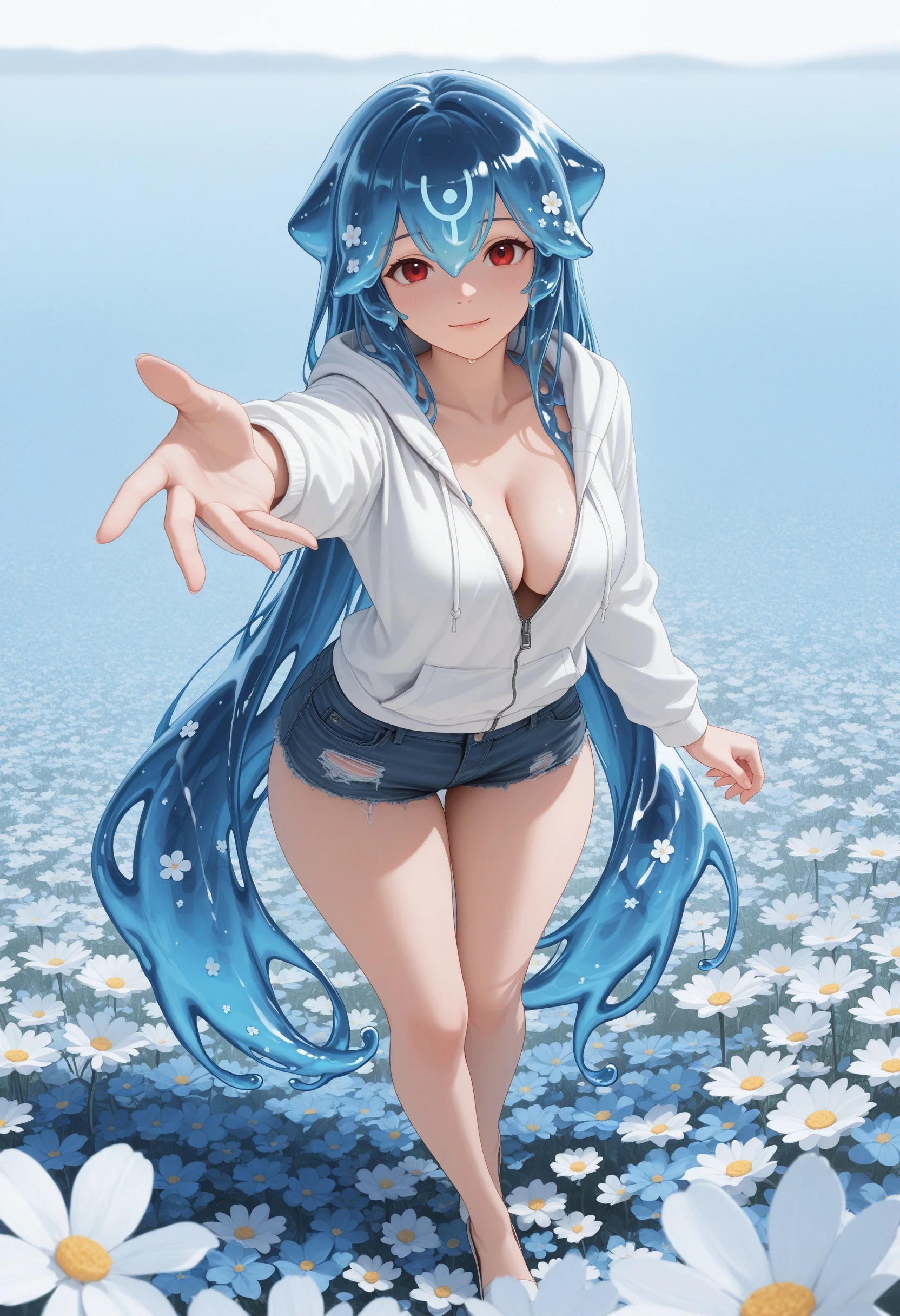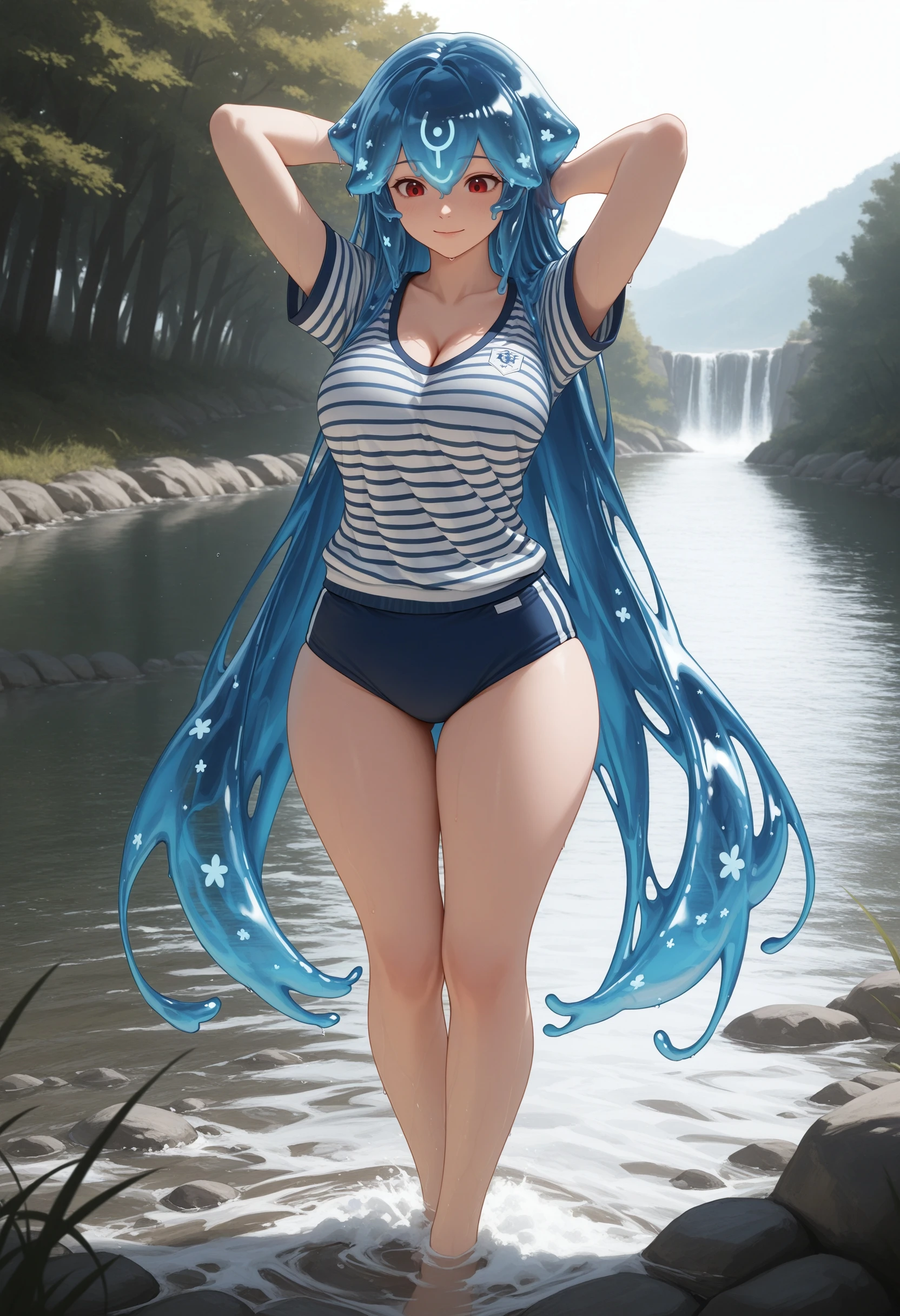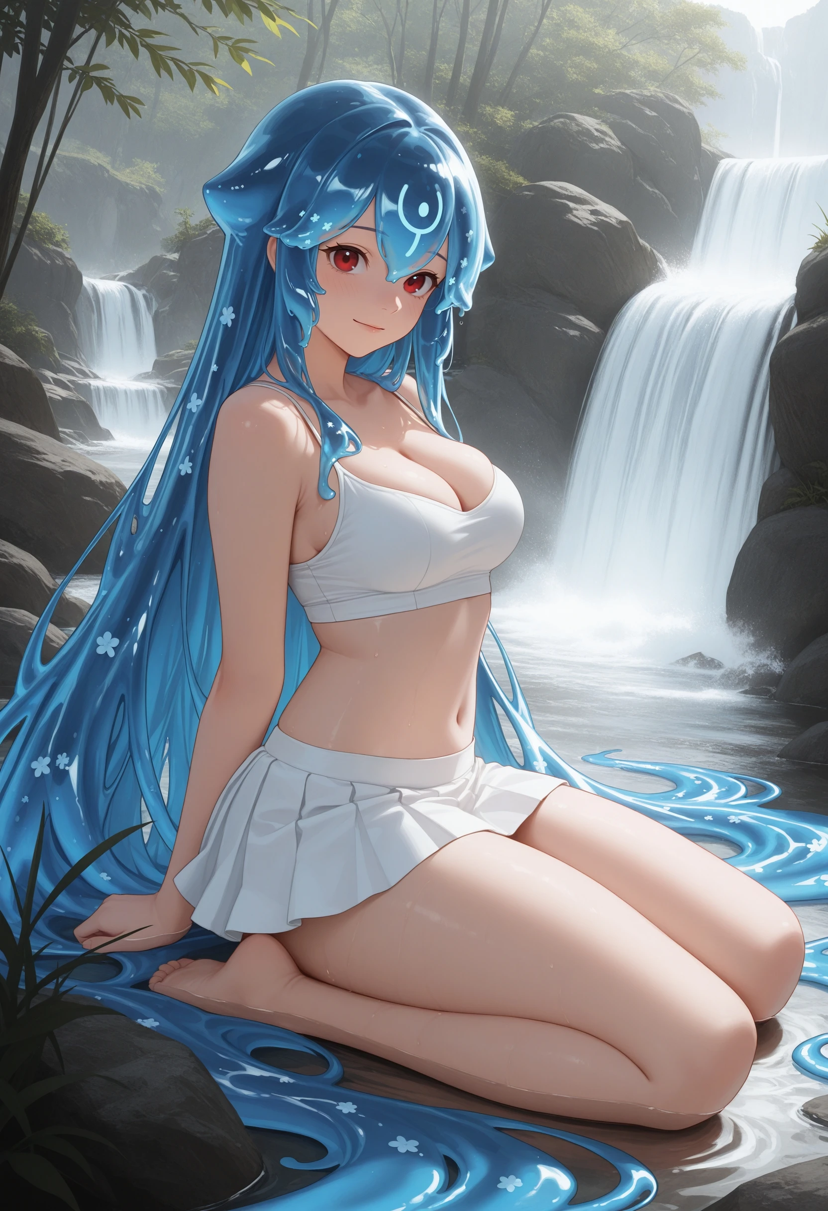 (Positive Prompts) hlbao, liquid hair, very long hair, blue hair, red eyes,