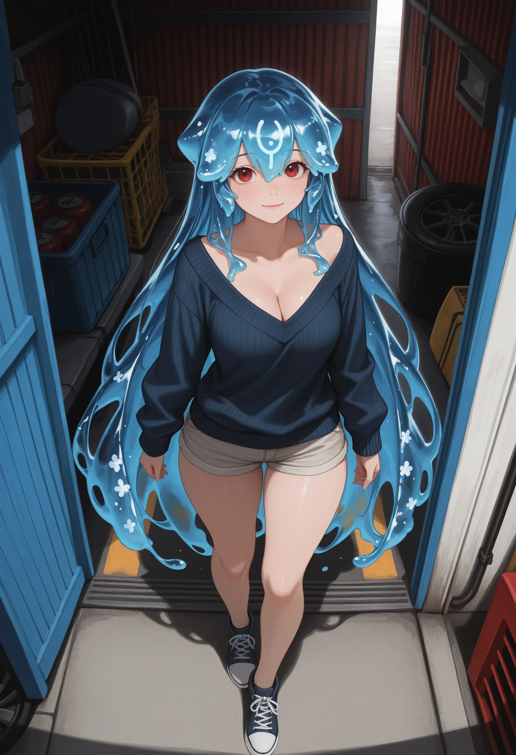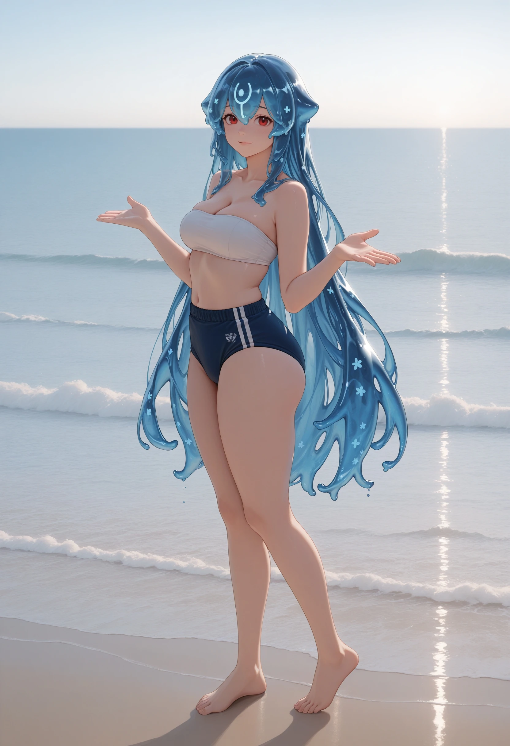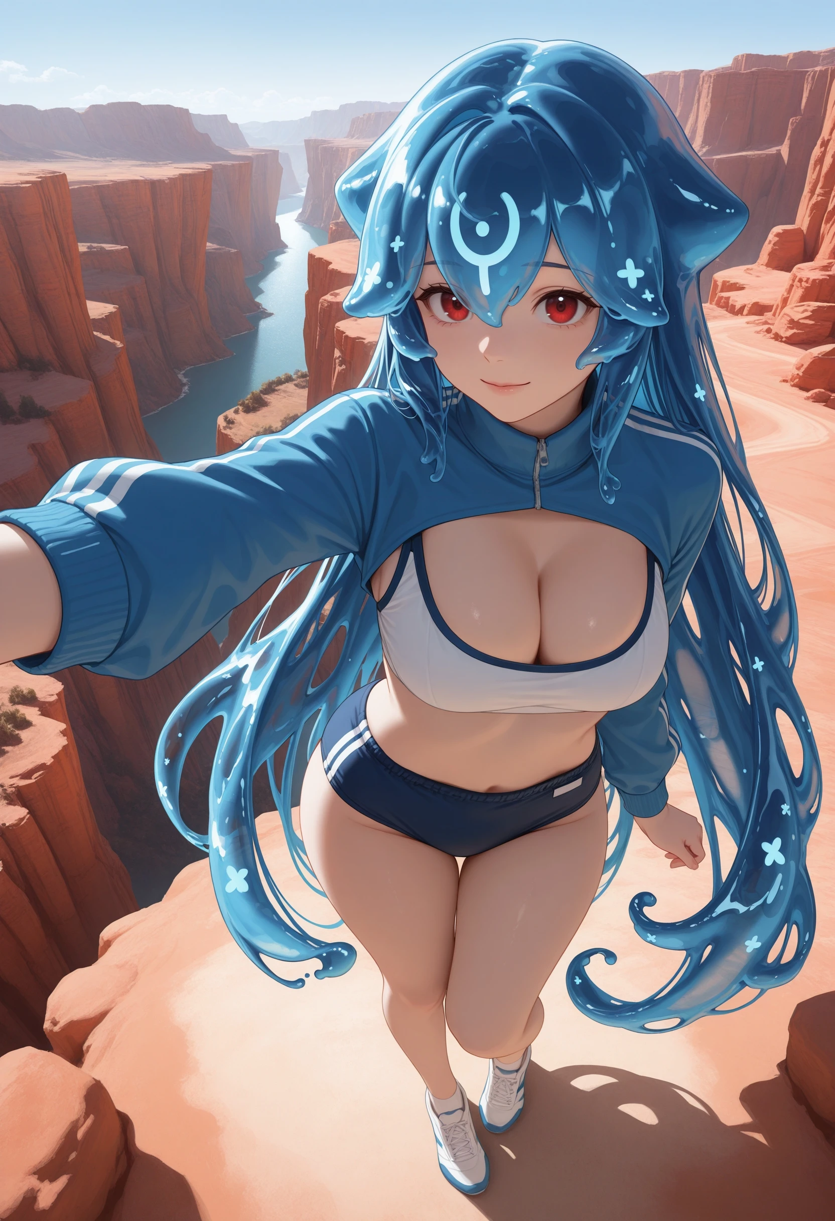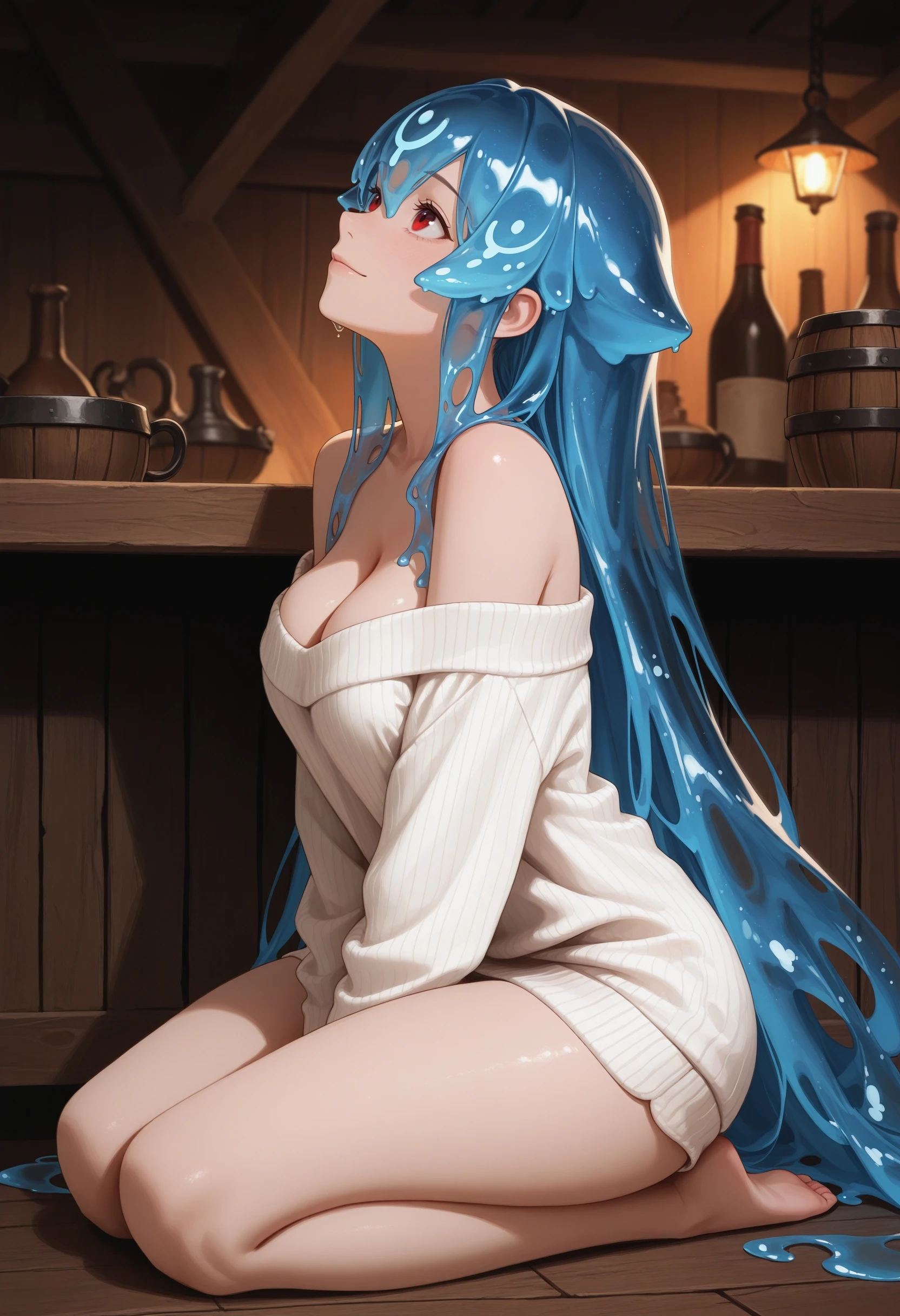 (Positive Prompts) hlbao, liquid hair, very long hair, blue hair, red eyes,
