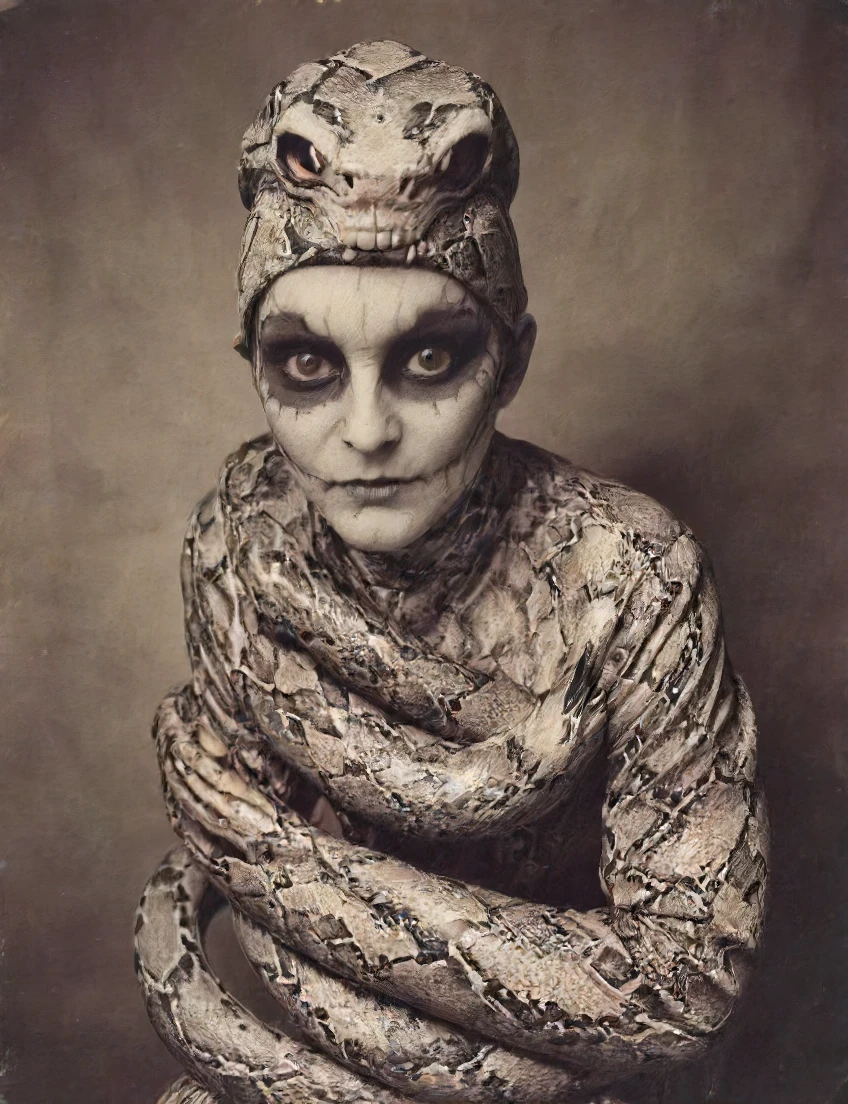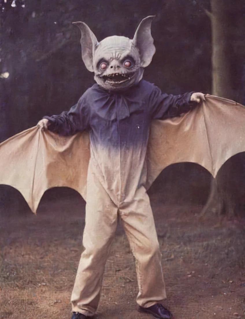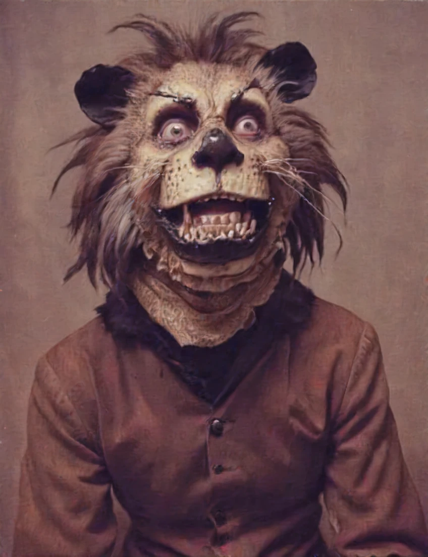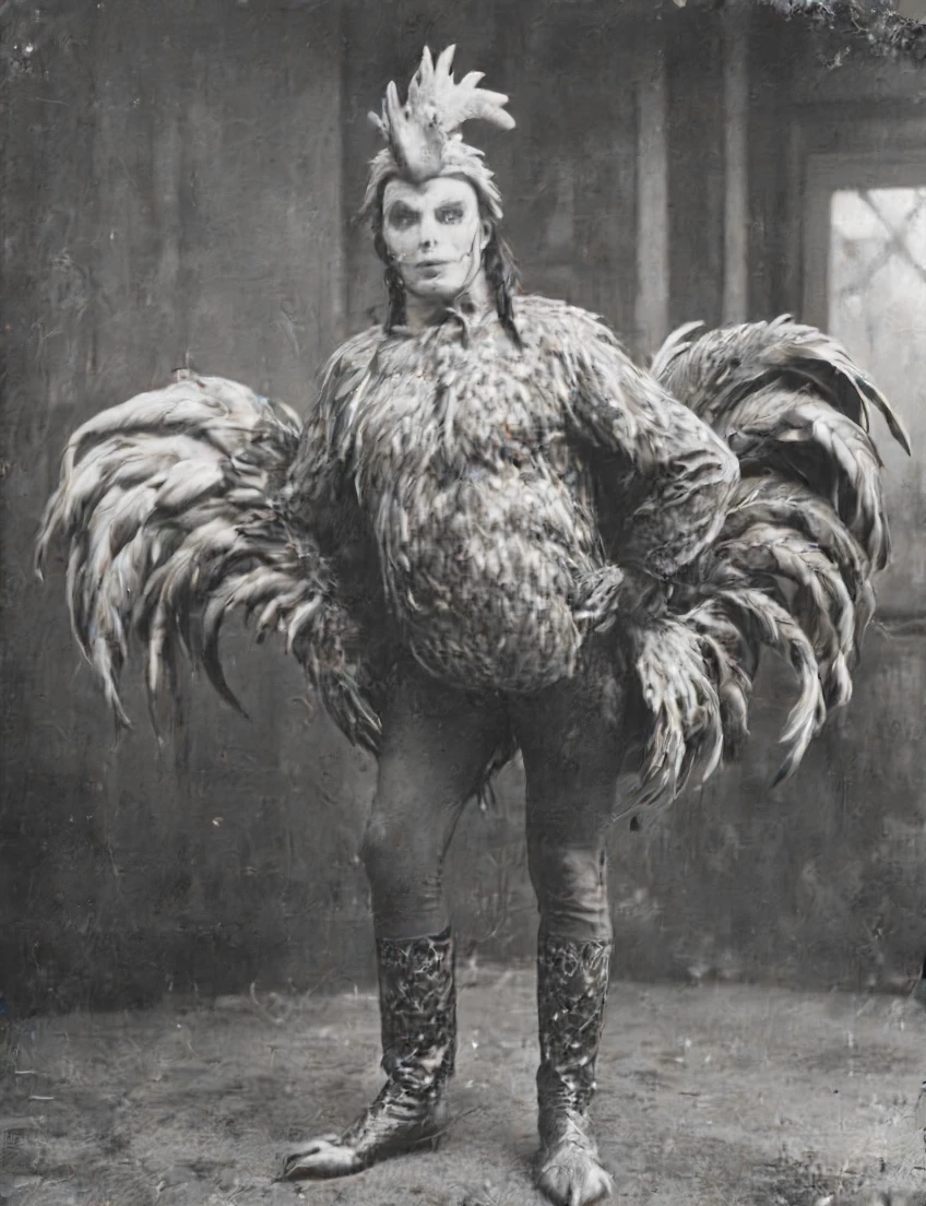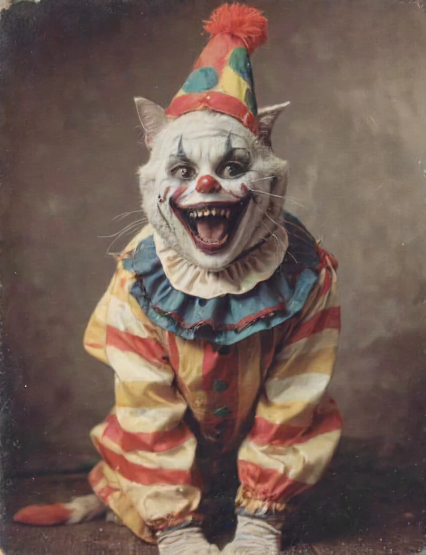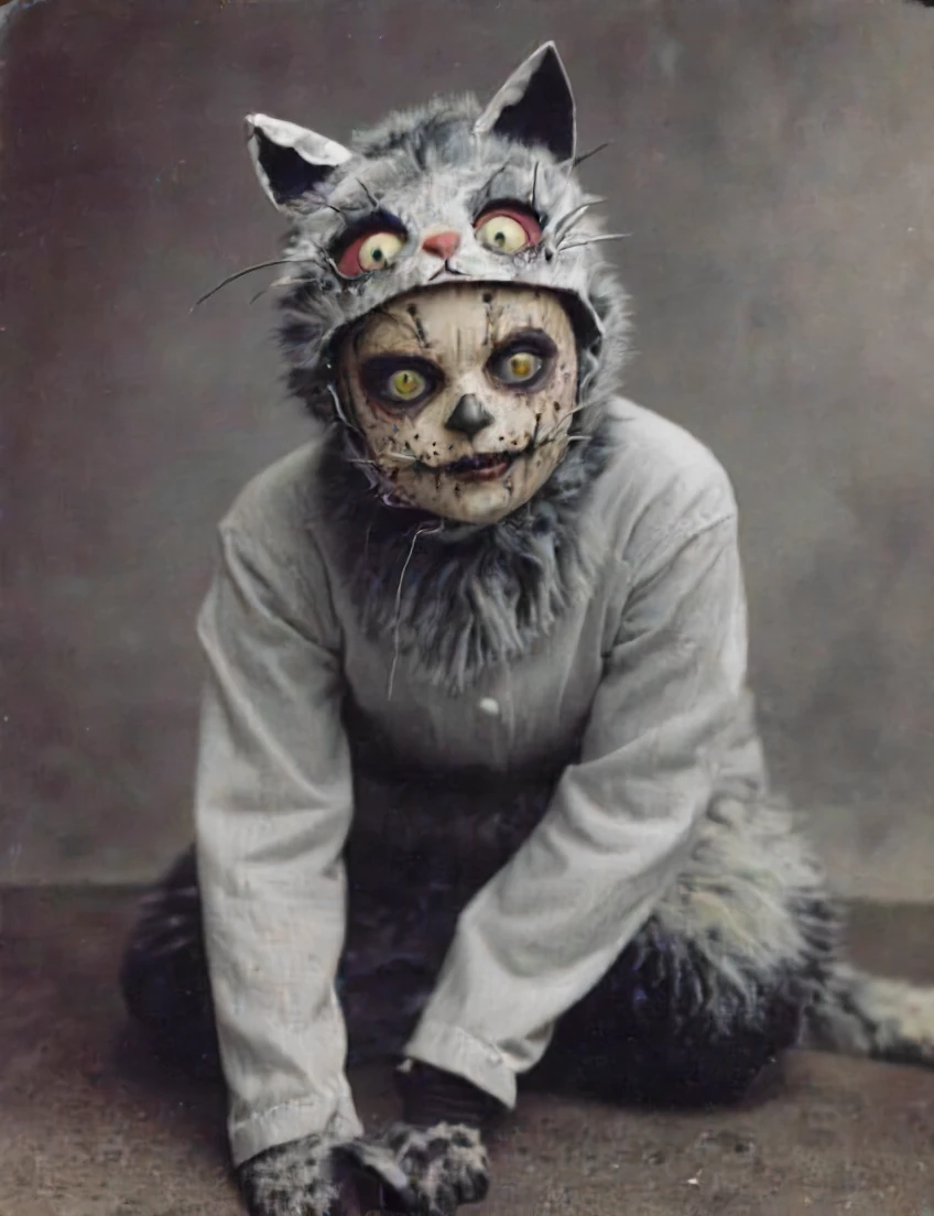 No trigger word... kinda. Freak, costume, badly made and creepy should do the trick. Also old photo and monochrome/sepia will add some spunk