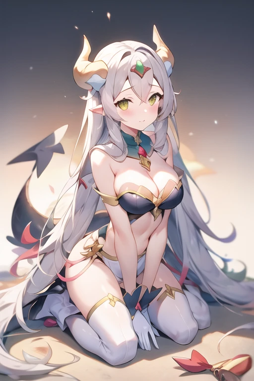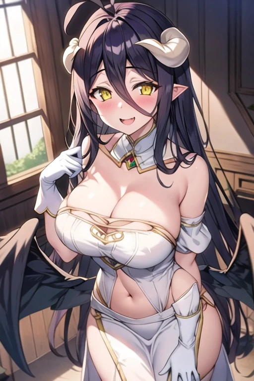 衣物: white gloves, dress, gloves, detached collar, hip vent,
