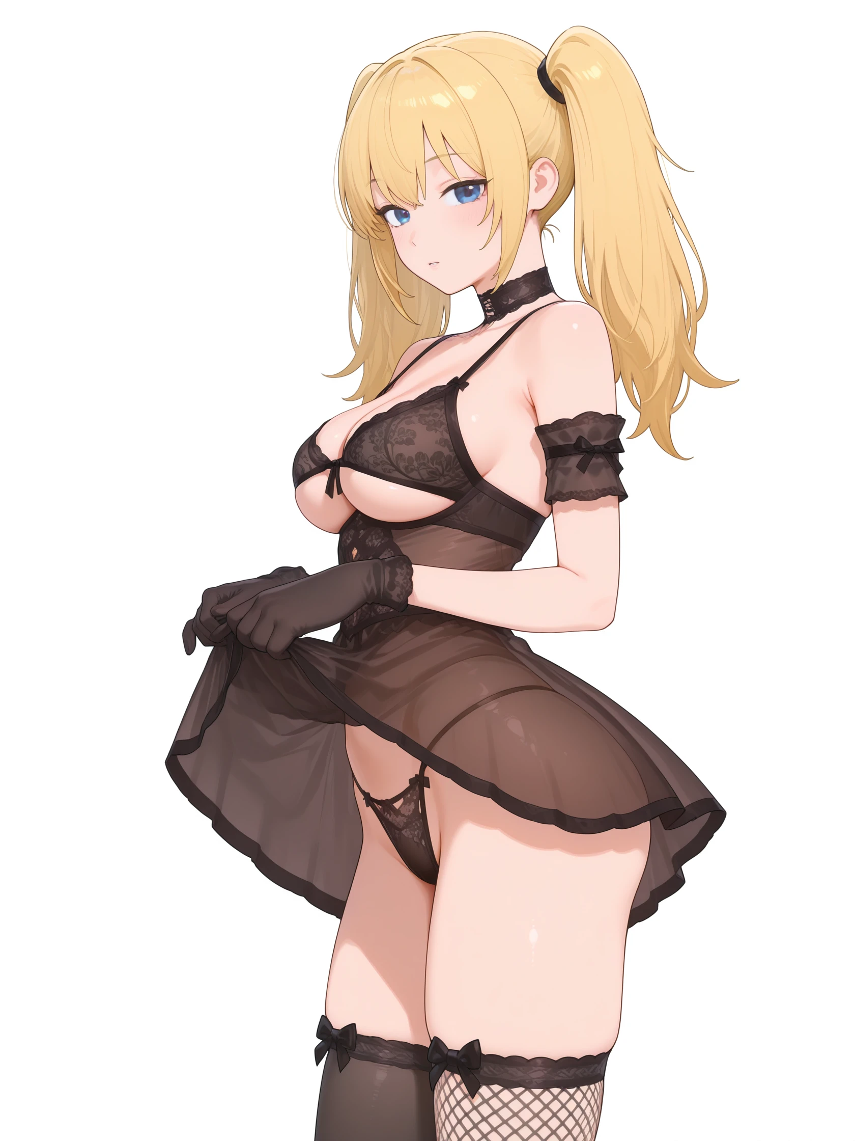 ani lingerie, underwear, gloves, panties, thighhighs, lingerie, see-through, choker, bra