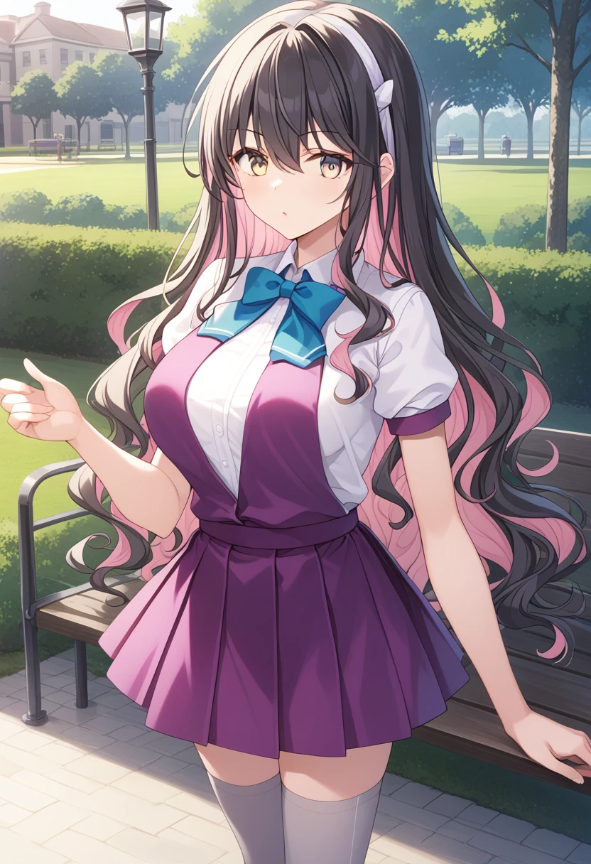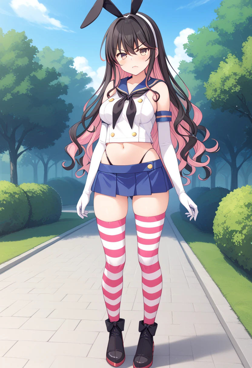 Kai-2 base : naganami2kc, multicolored hair, black hair, pink hair, colored inner hair, white headband, wavy hair, very long hair, bangs, hair between eyes, purple eyes, yellow eyes, gradient eyes