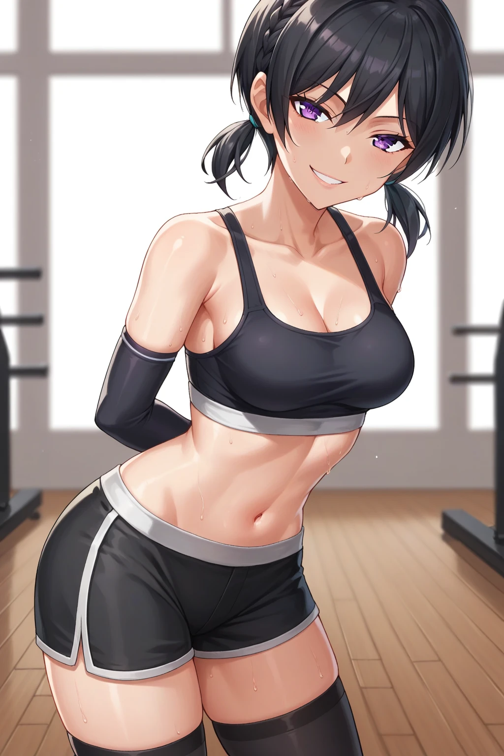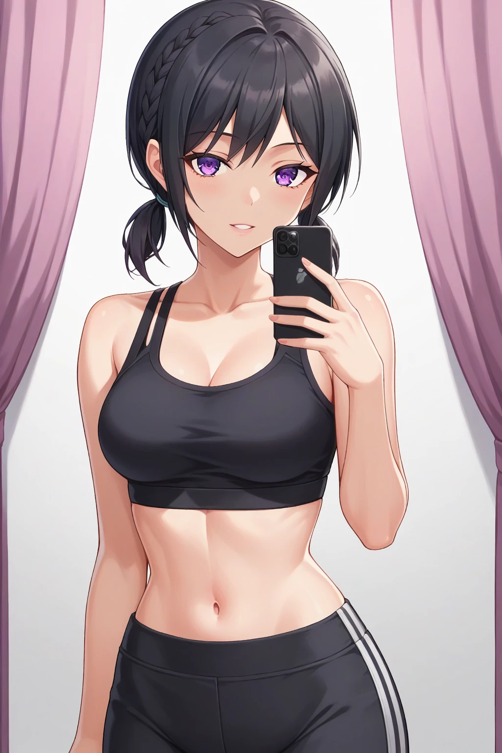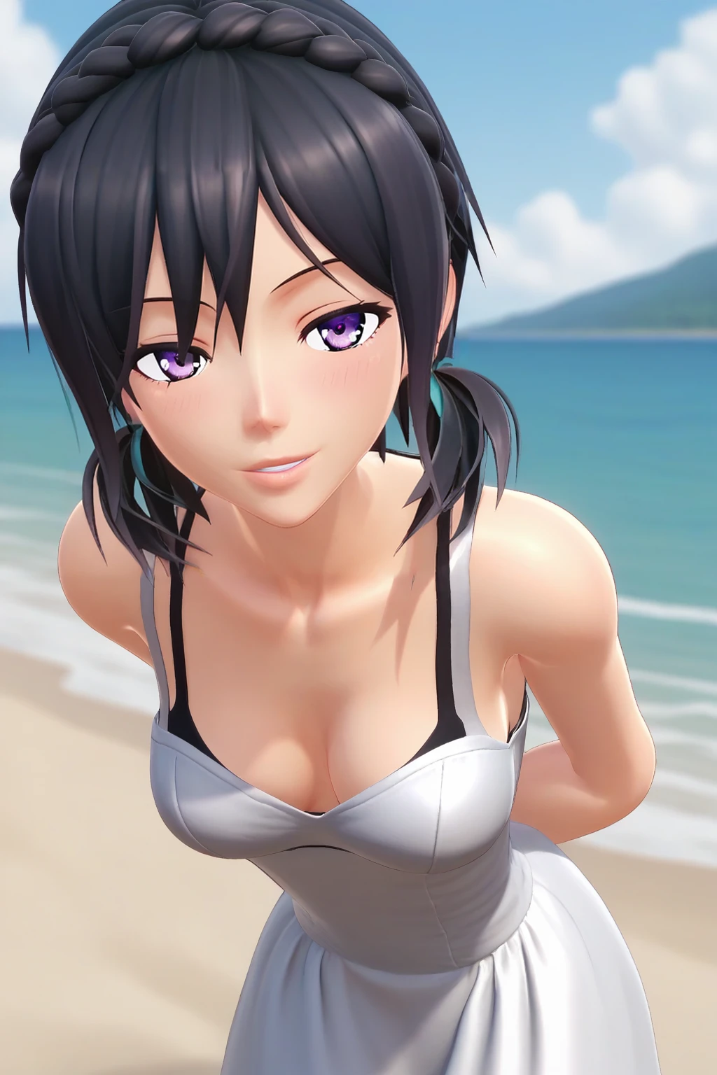 KJOmitsuki, black hair, purple eyes, short twintails, braid, 3d,